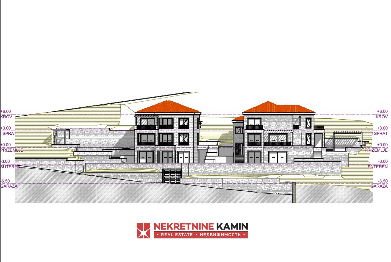 Mogućnost gradnje 2 vile sa maksimalnim BRGP oko 650m2+tehničke prostorije+garaže.