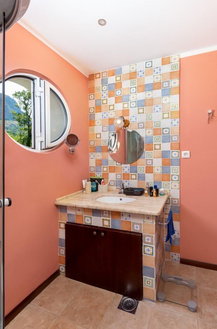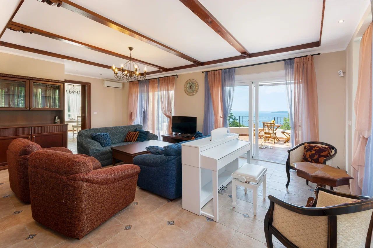 Vila odiše elegancijom, a svaki detalj unutar nje svedoči o sofisticiranom ukusu. Italijanski nameštaj i vrata doprinose harmoniji prostora, dok se kroz prozore pruža spektakularan pogled na more, stvarajući idiličan ambijent.