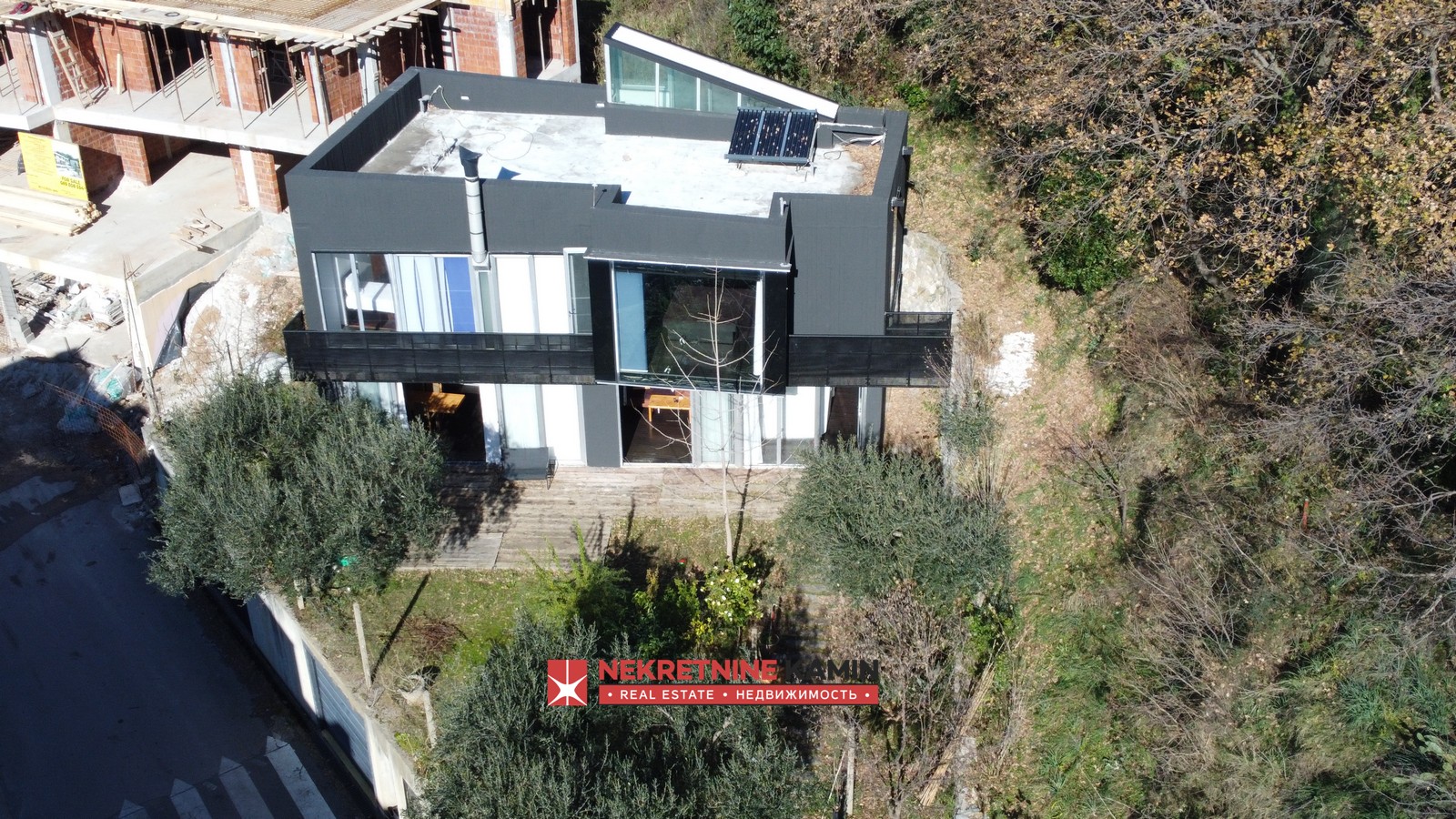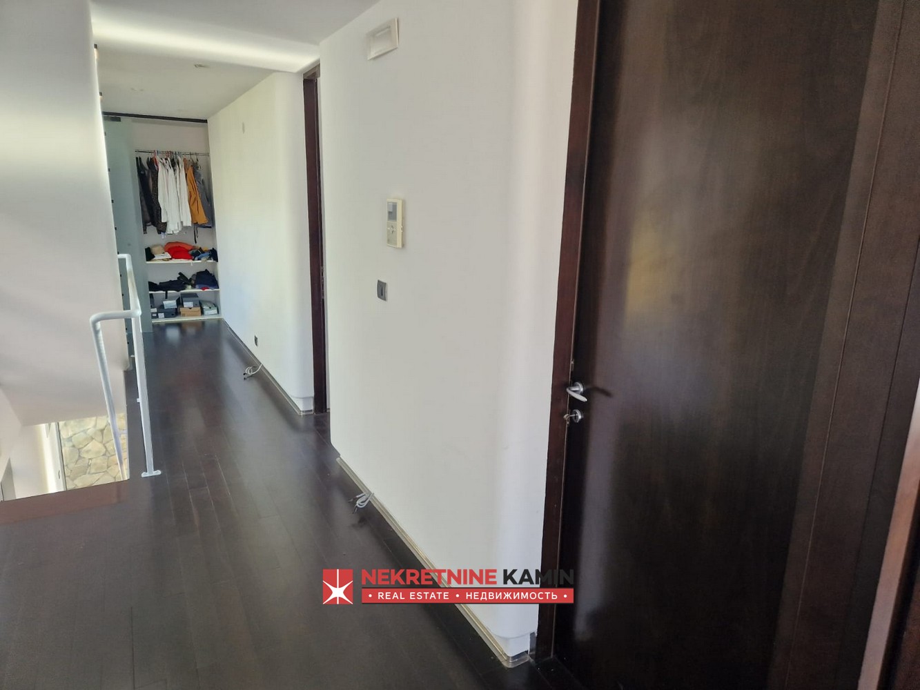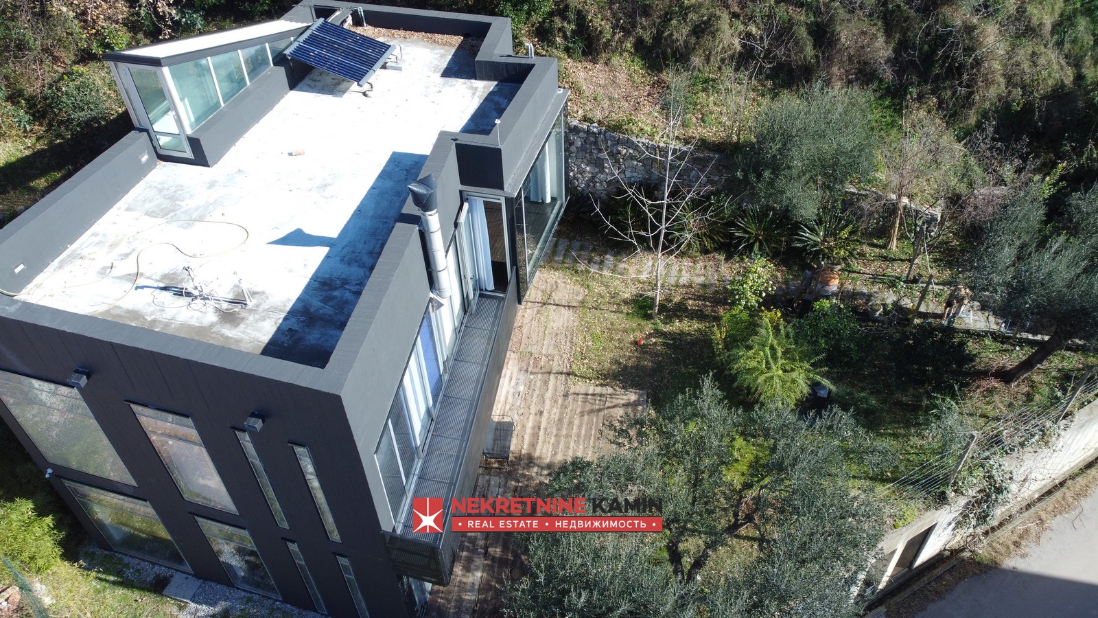 Krovna terasa, sa solarnim panelom i pogledom na more, projektovana je za letnju kuhinju. Kuća projektovana sa instalacijama za 'smart house' sistem i klimatizaciju već integrisanim u plafone.