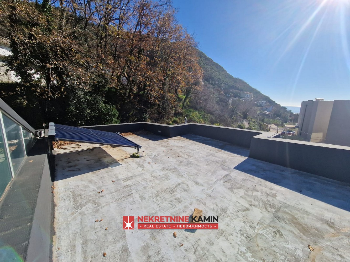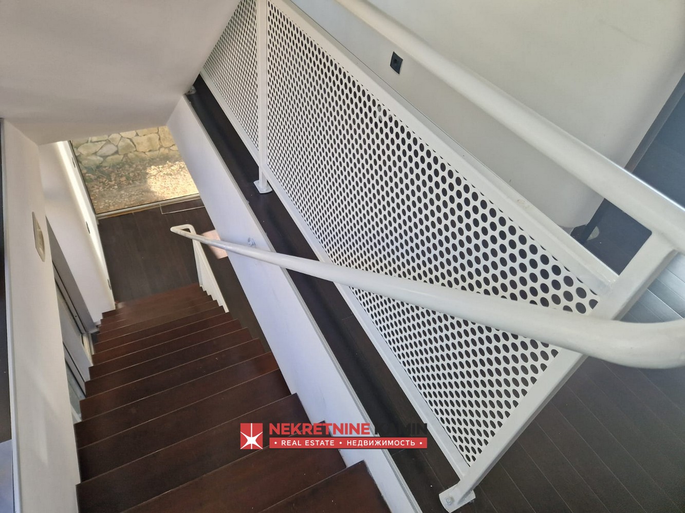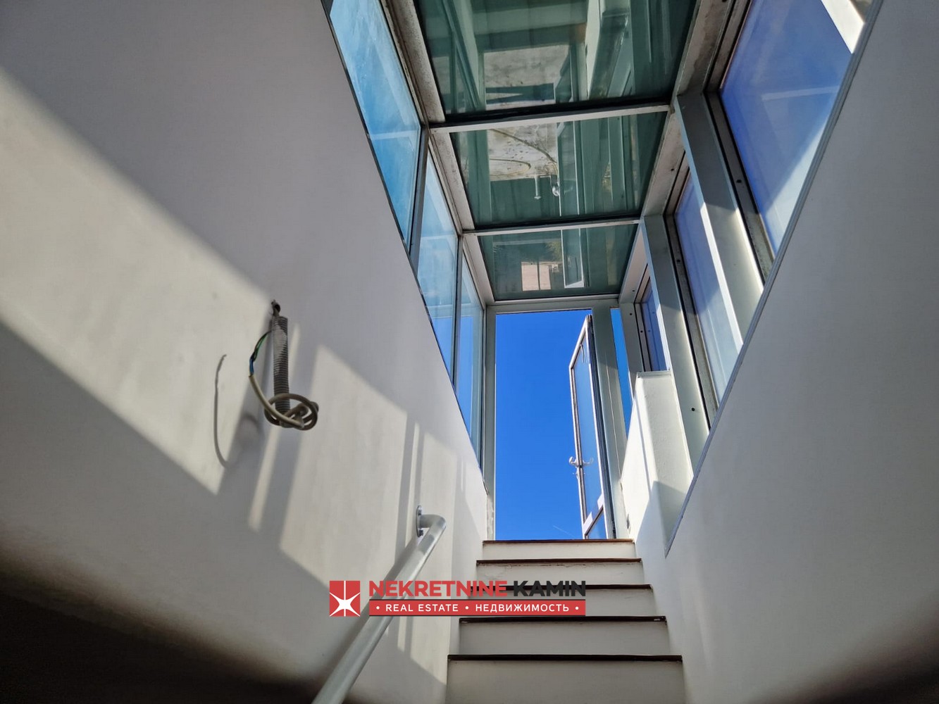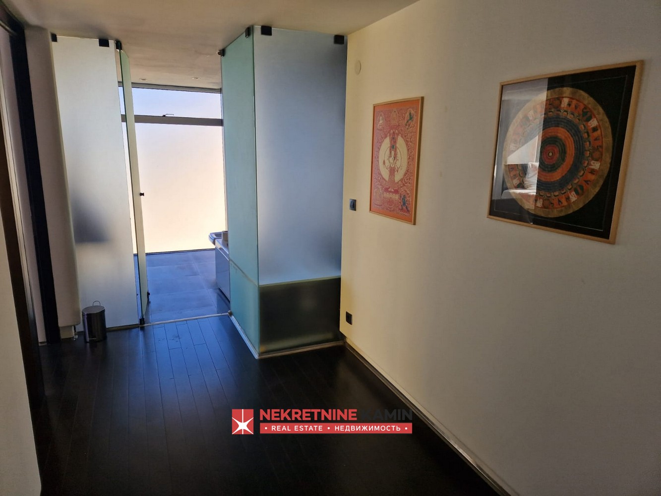 Krovna terasa, sa solarnim panelom i pogledom na more, projektovana je za letnju kuhinju. Kuća projektovana sa instalacijama za 'smart house' sistem i klimatizaciju već integrisanim u plafone.