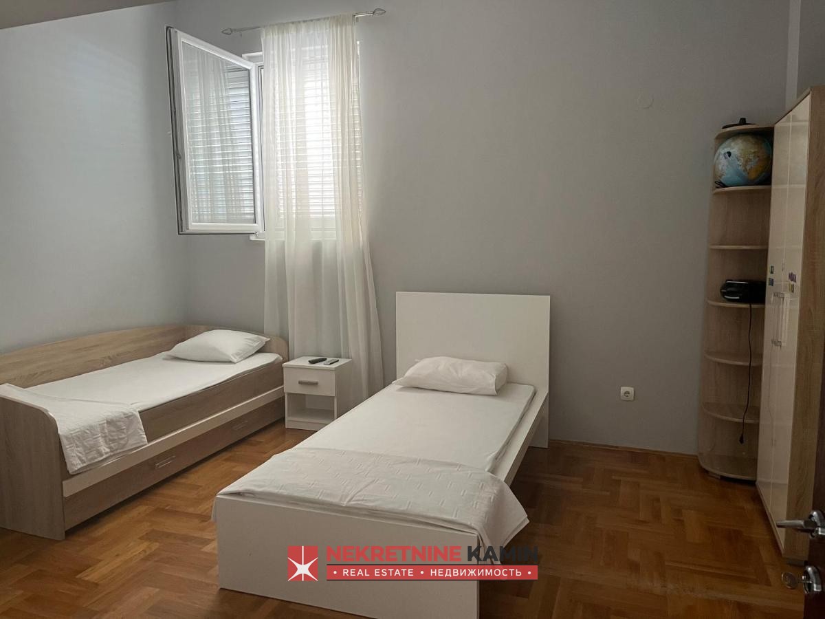 Od mora je udaljen oko 700m i u blizini se nalazi veliki market, restoran i kafići.