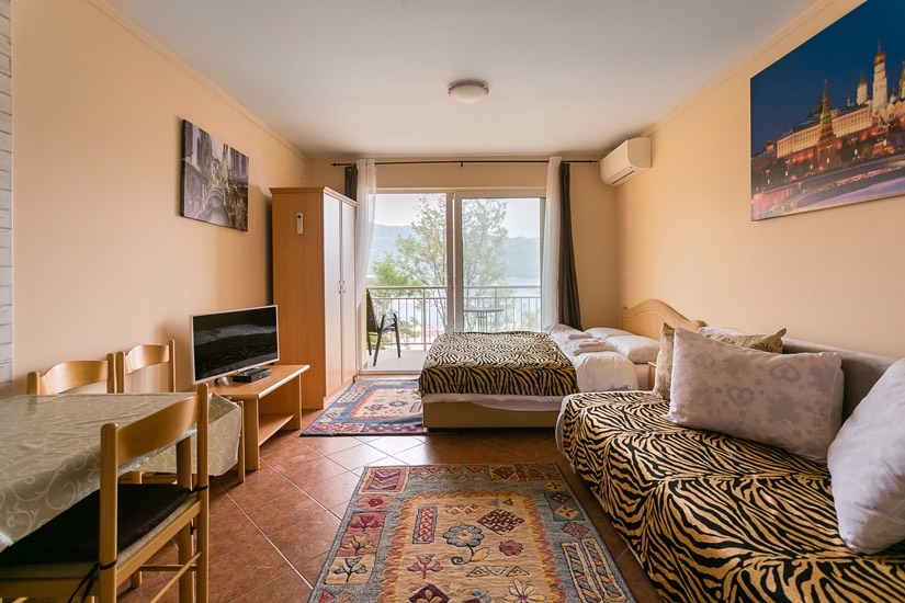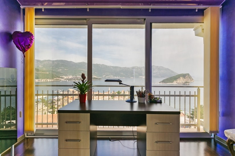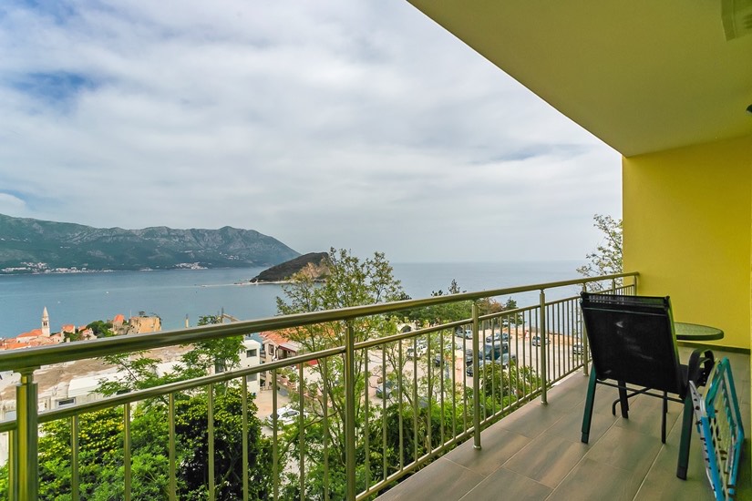 Svaki prozor otvara prekrasan pogled na more, stari grad, celu Budvu, planine i staru tvrđavu. Do centra grada je 600 metara, do mora je potrebno oko 15 minuta hoda.