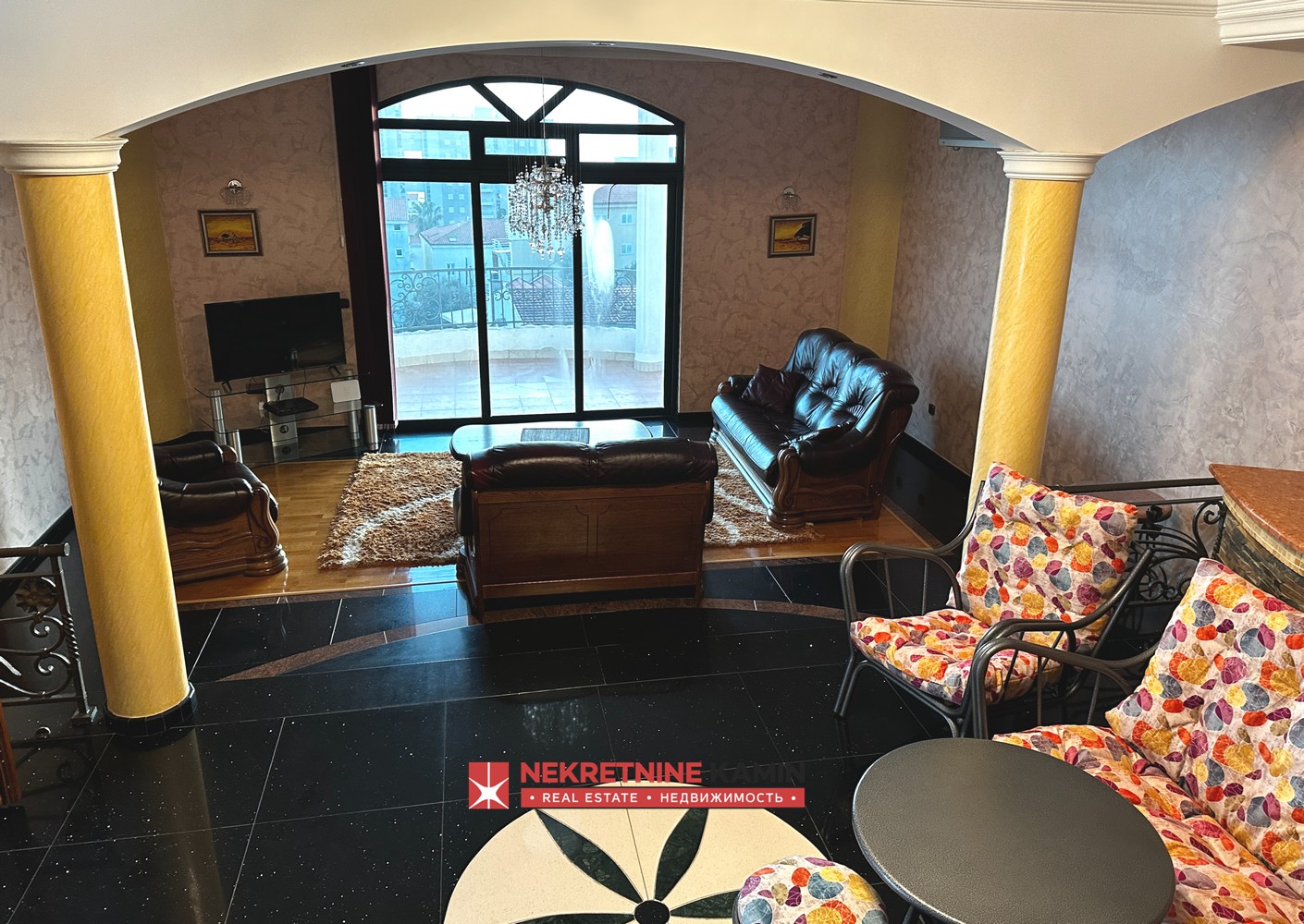 Sastoji se od dnevnog boravka, kuhinje, četiri spavaće sobe, tri kupatila, vešeraja, kancelarije i terase sa pogledom na more.