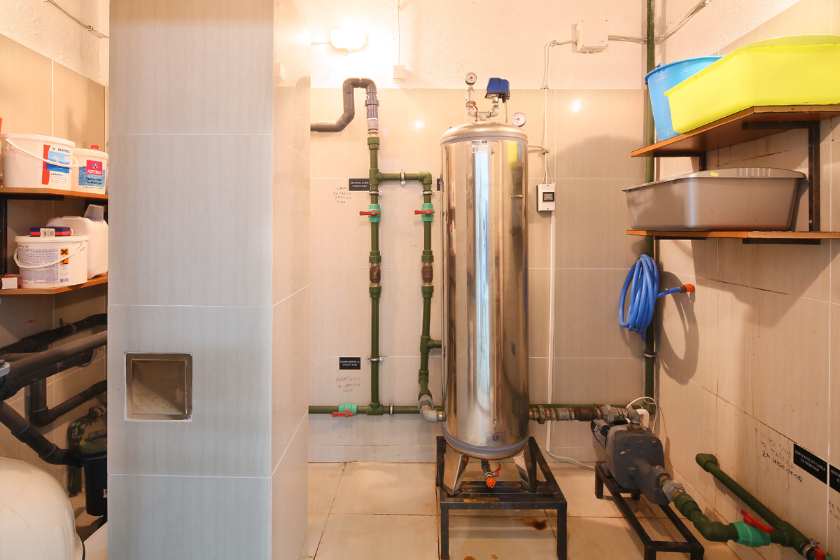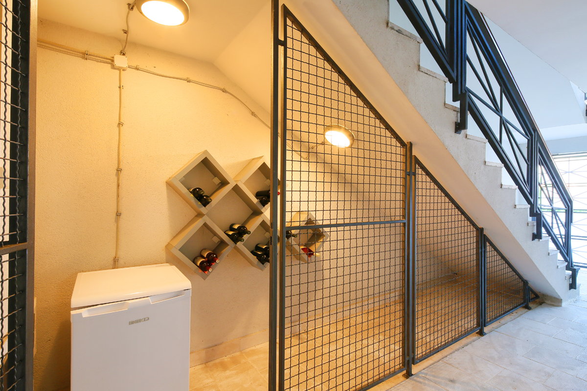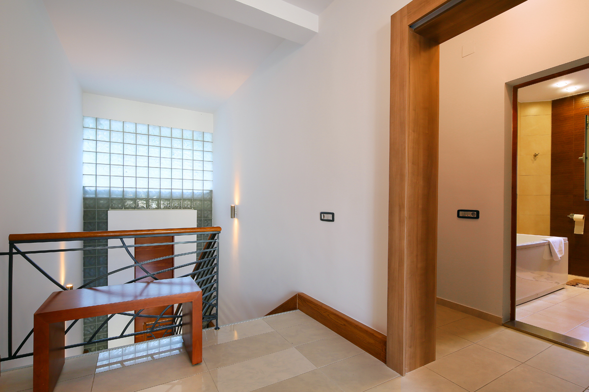 -U mezaninu se nalazi apartman (Soba, kuhinja, kupatilo) sa lođom i servisni hodnik oko bazena.