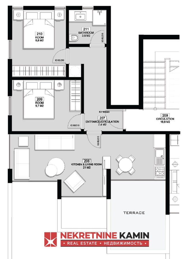 Prodaju se sa ugradjenom kuhinjom i ugradnim elementima.
