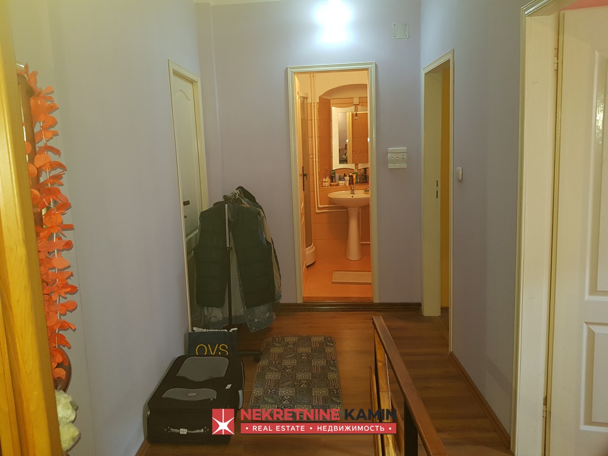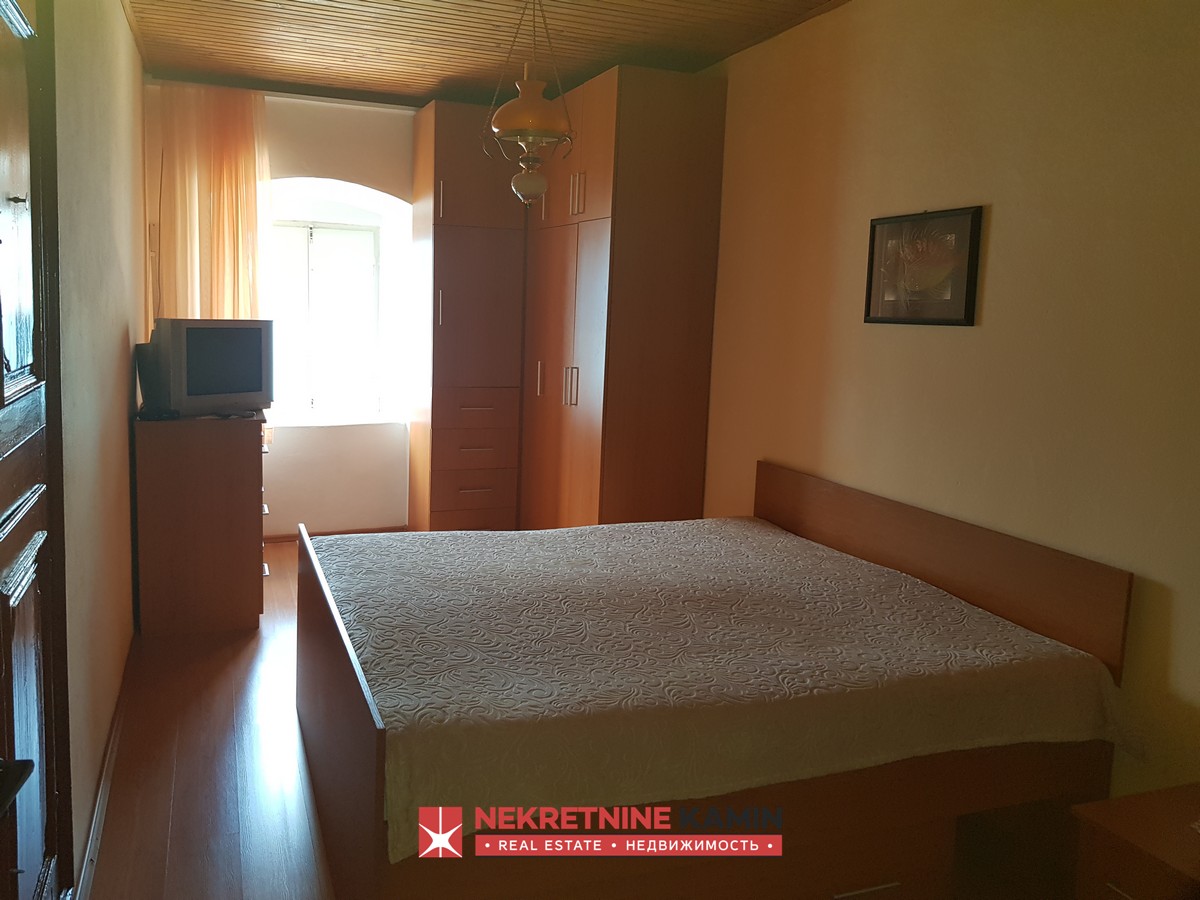 Na prizemlju su dvije konobe. Stepenice vode do prvog sprata gde se nalaze dva hodnika, kupatilo, dnevni boravak sa kuhinjom, jedna veća spavaća soba. Unutrašnje stepenice vode do sledećeg sprata sa hodnikom, kupatilom, tri spavaće sobe, dnevnim boravkom, kuhinje. Stepenicama se penjemo do visokog potkrovlja gde se nalazi hodnik, kupatilo, dve spavaće sobe i dodatnih 40m2 koji nisu završeni.