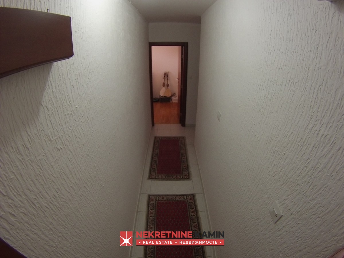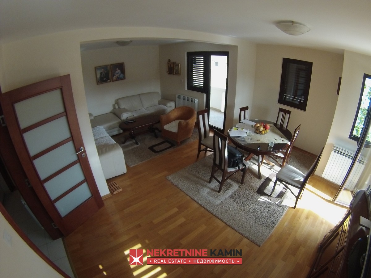 Sastoji se od velikog dnevnog boravka sa dvije terase, sa odvojenom kuhinjom i trpezarijom i kupatilom, u drugom dijelu je veliki hodnik, tri spavaće sobe, kupatilo, dvije terase.