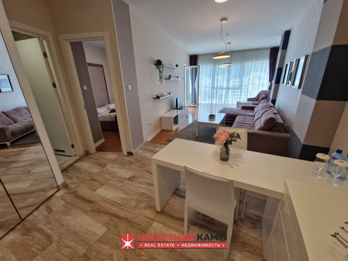 Sastoji se od hodnika, kuhinje, trpezarije, dnevnog boravka sa izlaskom na terasu, kupatilo i spavaća soba.