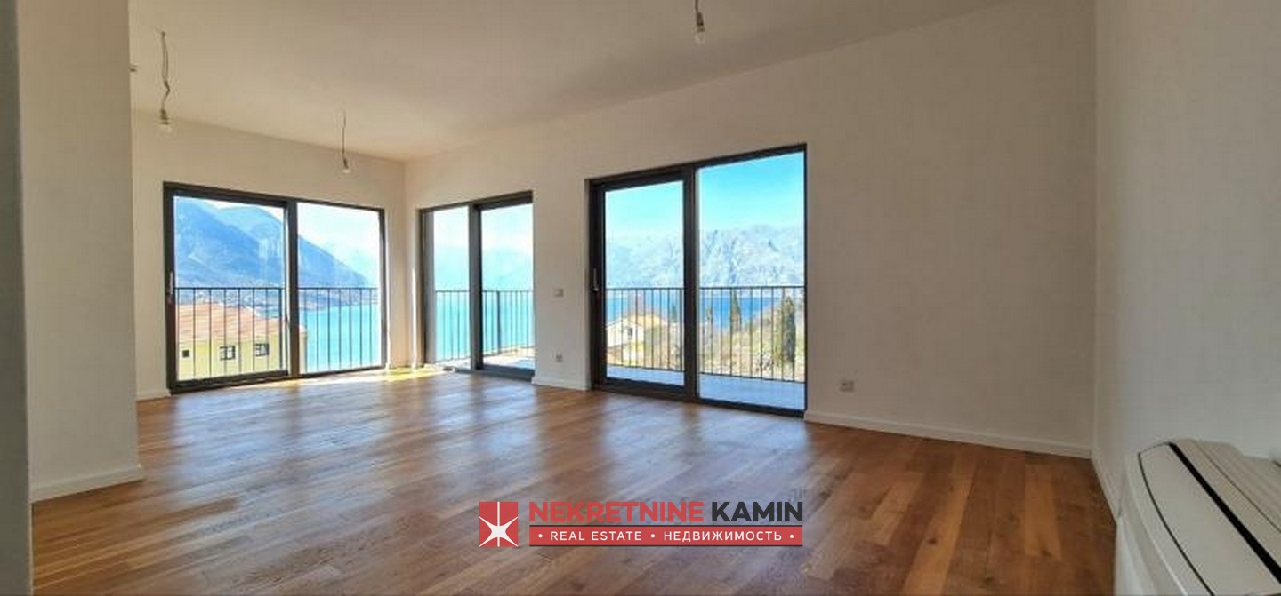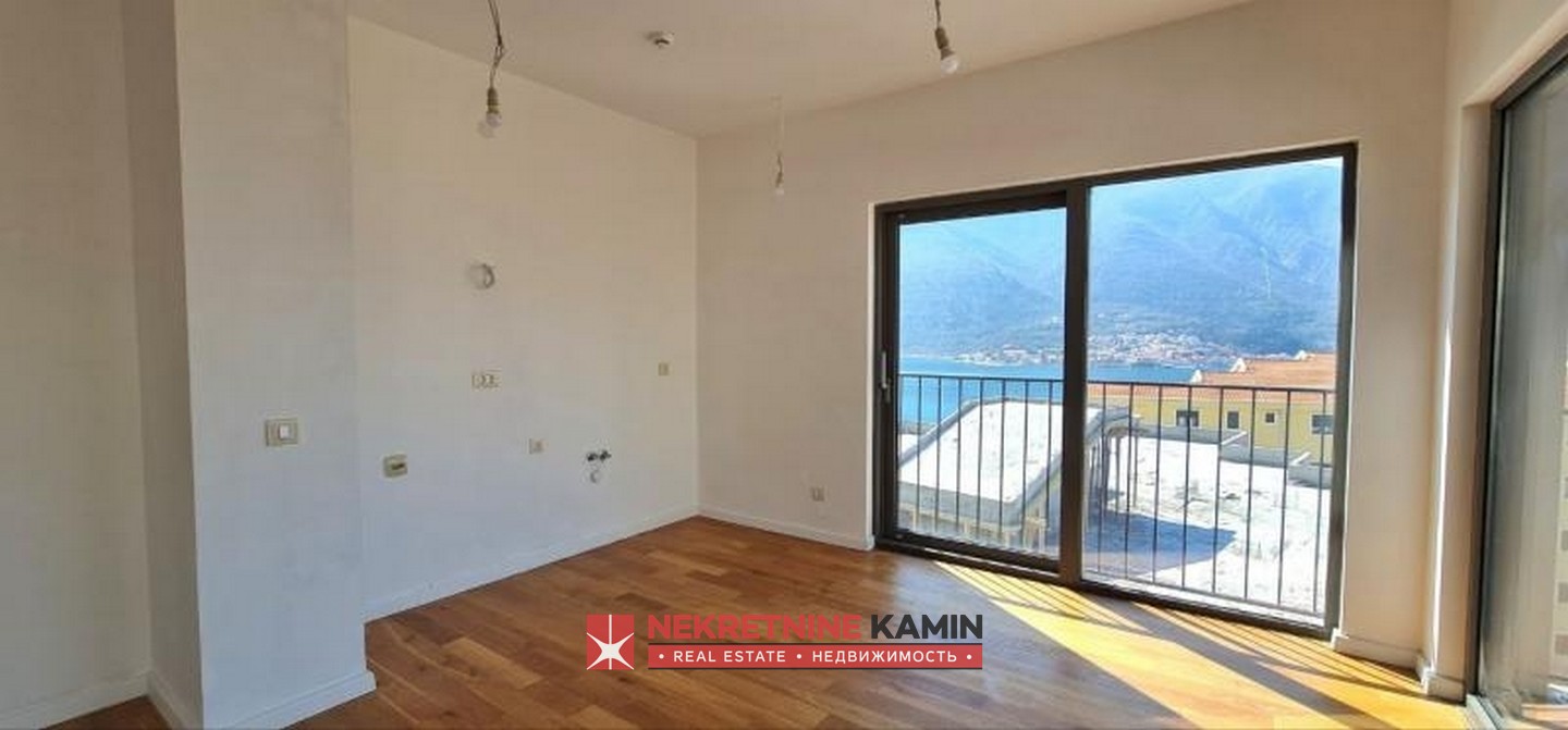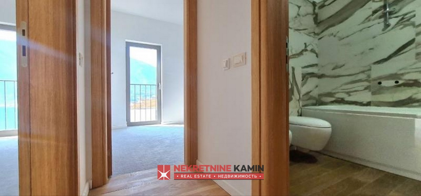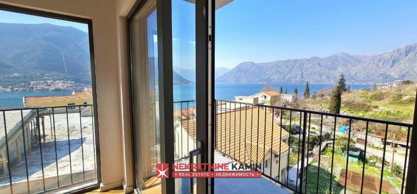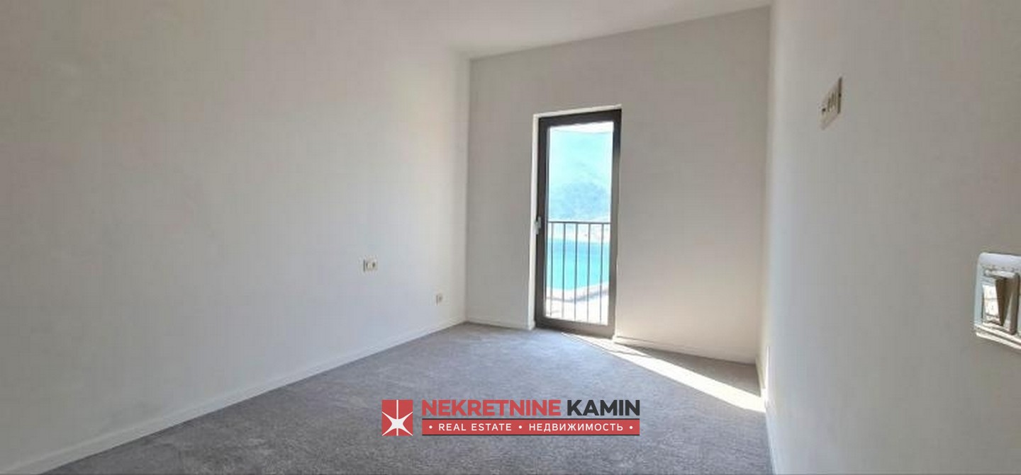 Nalazi se na četvrtom spratu stambene zgrade sa liftom i sastoji se iz hodnika,tri spavaće, dva kupatila, kuhinje, trpezarije i prostrane terase sa pogledom na Perast.