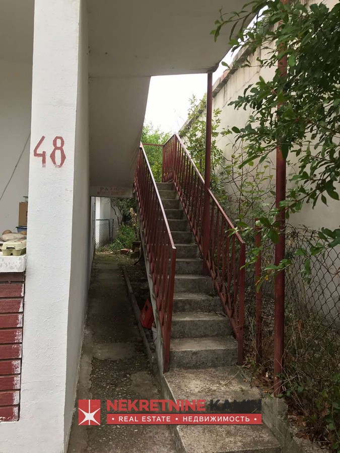 U prizemlju se nalazi dvosoban stan sa terasom i ima izlaz u dvorište.
