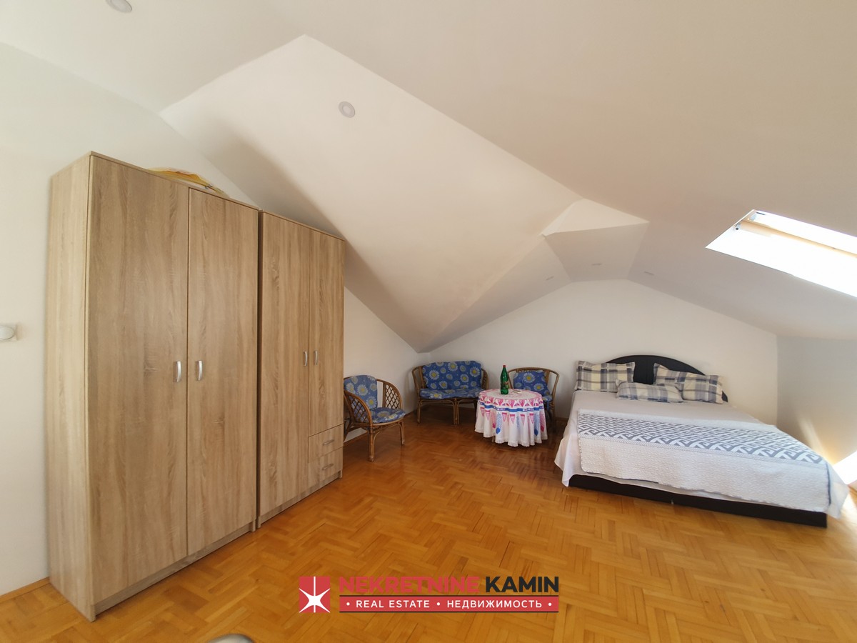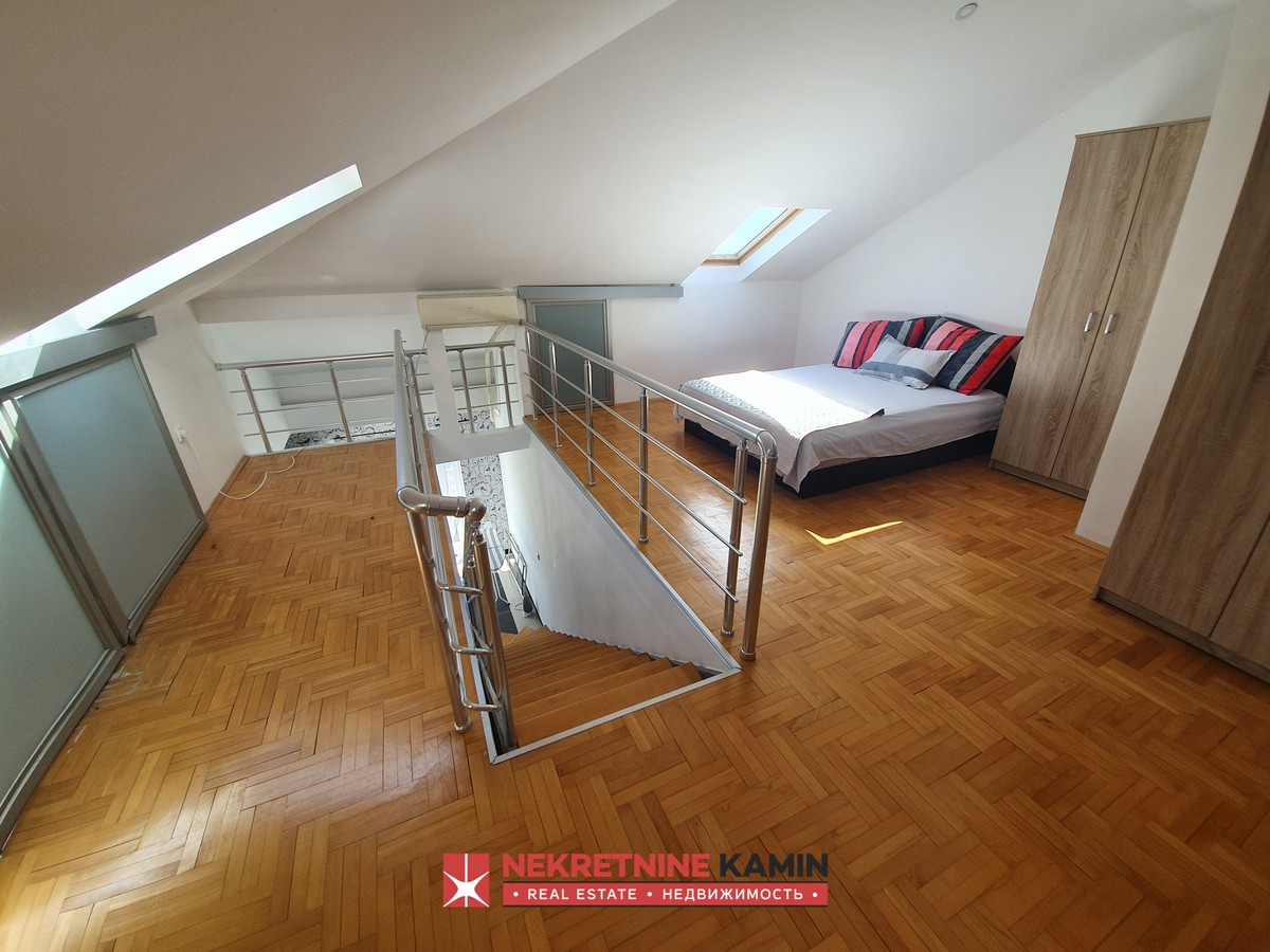 Spavaća sobe sa ugradnim plakarima se nalazi na galeriji do koje se penje unutrašnjim stepenicama.