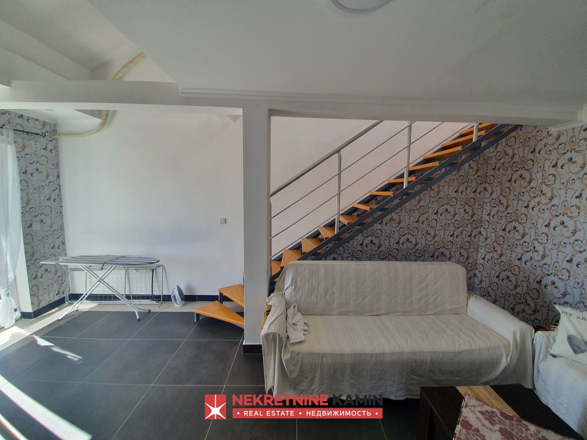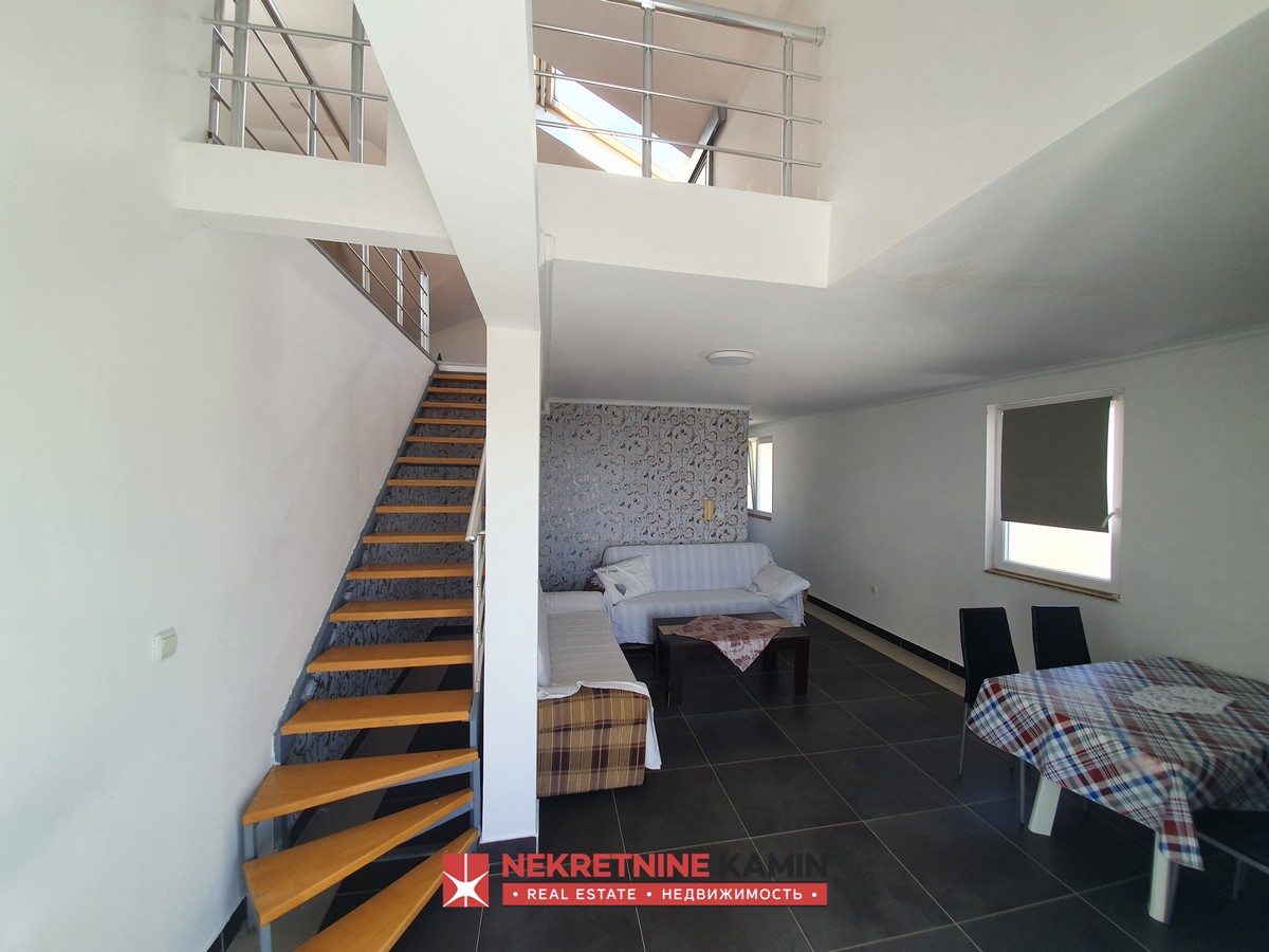 Sastoji se od velikog hodnika, odvojene kuhinje, dnevnog boravka sa trpezarijom, kupatilom, velike spavaće sobe i terase sa koje se pruža djelimičan pogled na more.