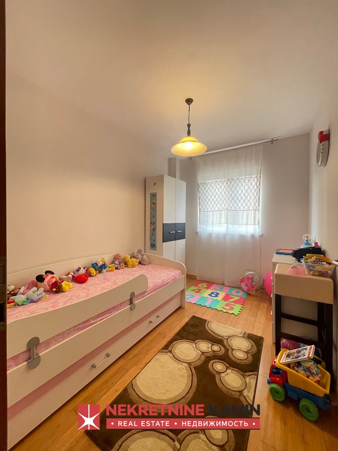 Zauzima površinu od 76 m2 i nalazi se na drugom spratu stambene zgrade koja nema lift.