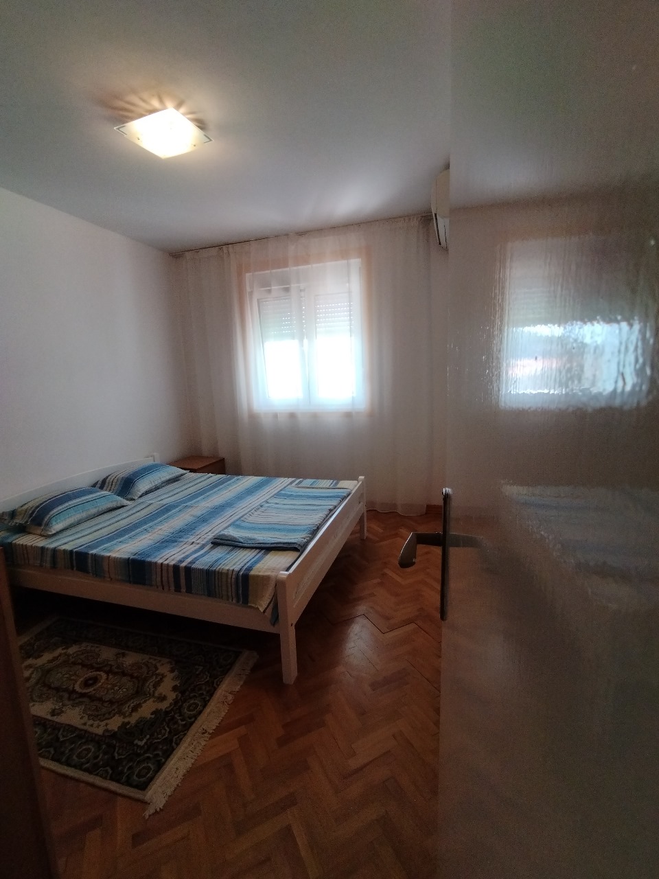 Rasporedjen je na dvije spavaće sobe, kupatilo, dnevni boravak, terasu + ostava.