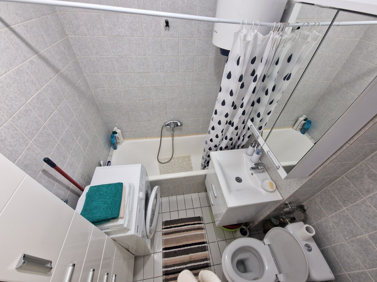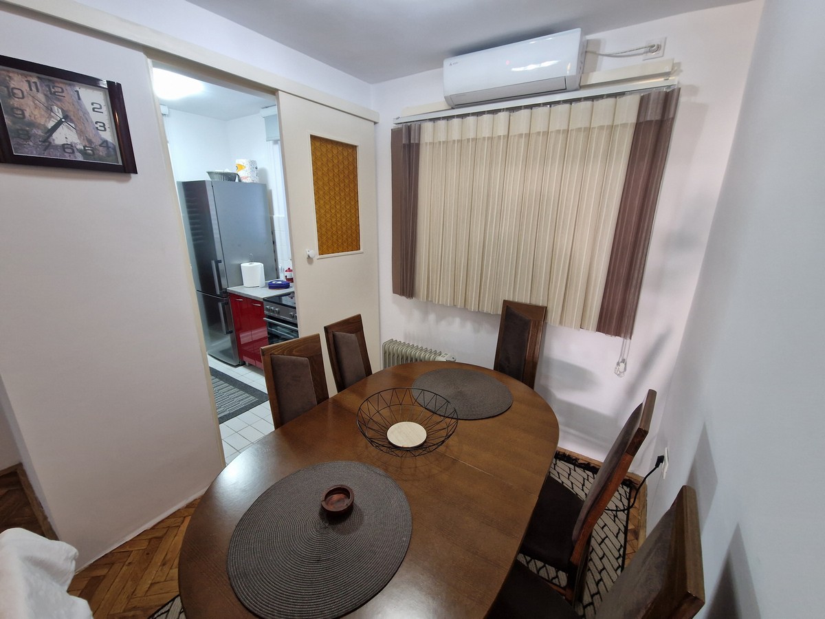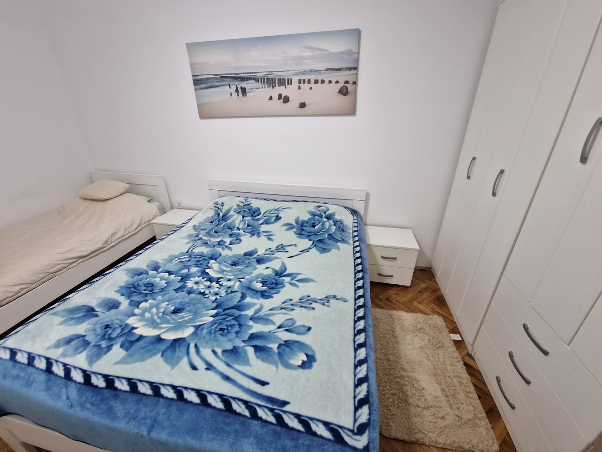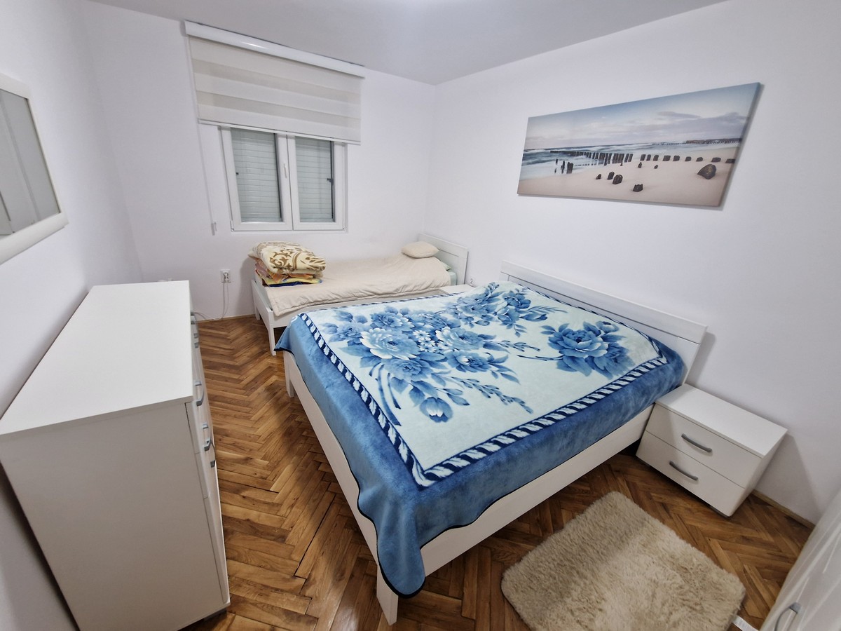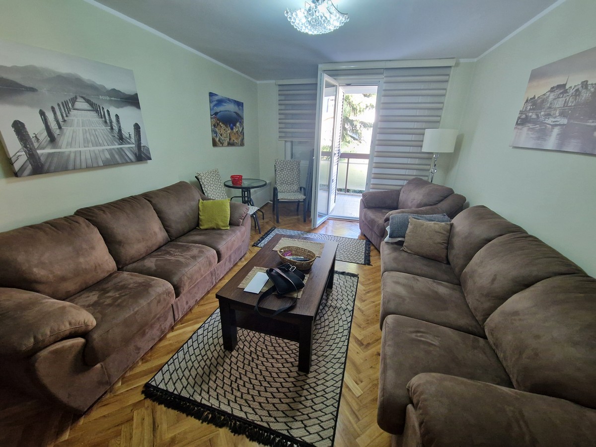 Kompletno je opremljen očuvanim namještajem I bijelom tehnikom.