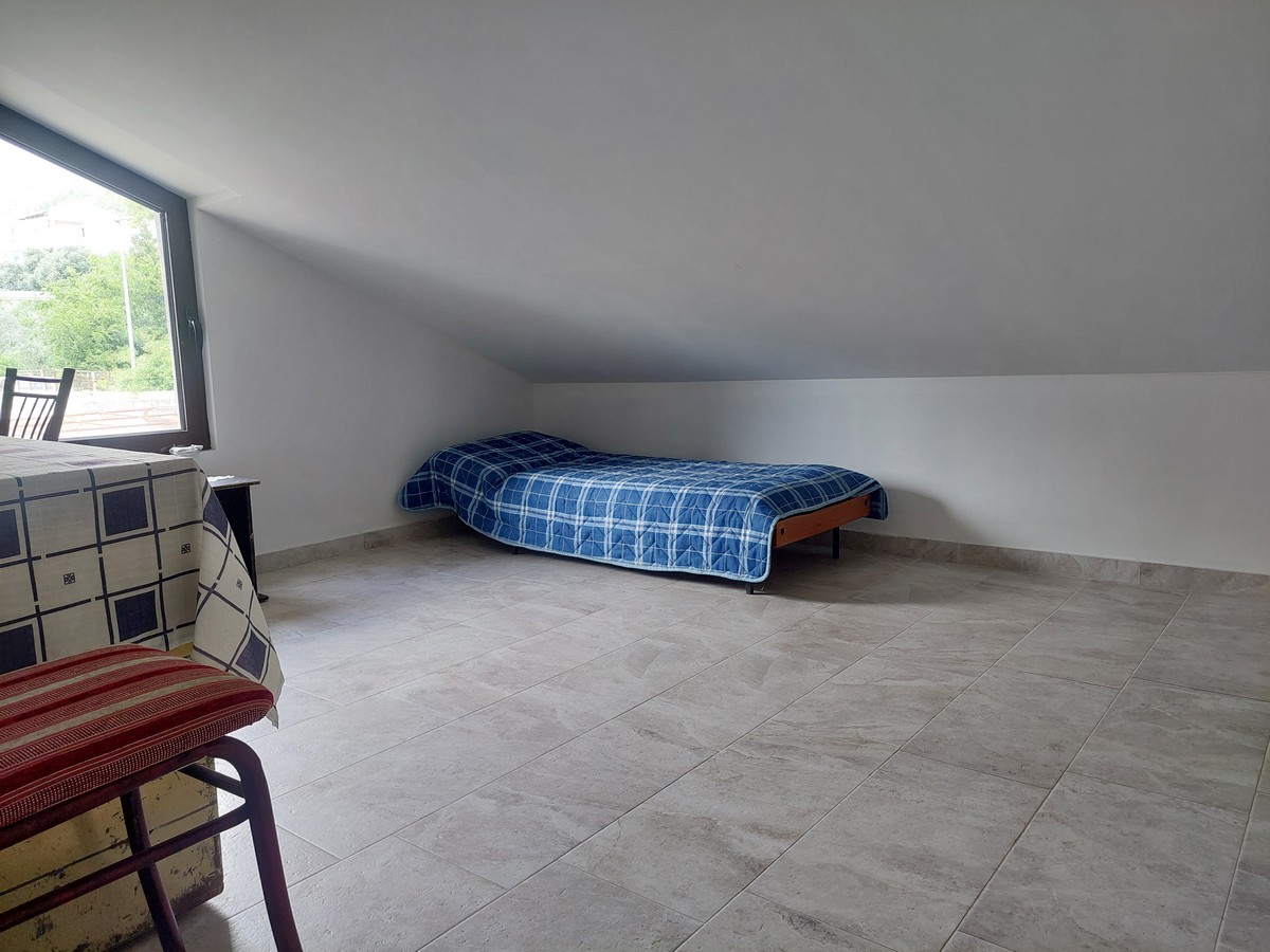 Do gornjeg nivoa se dolazi unutrašnjim stepenicama i tu se nalaze tri spavaće sobe, kupatilo, veća i manja terasa.