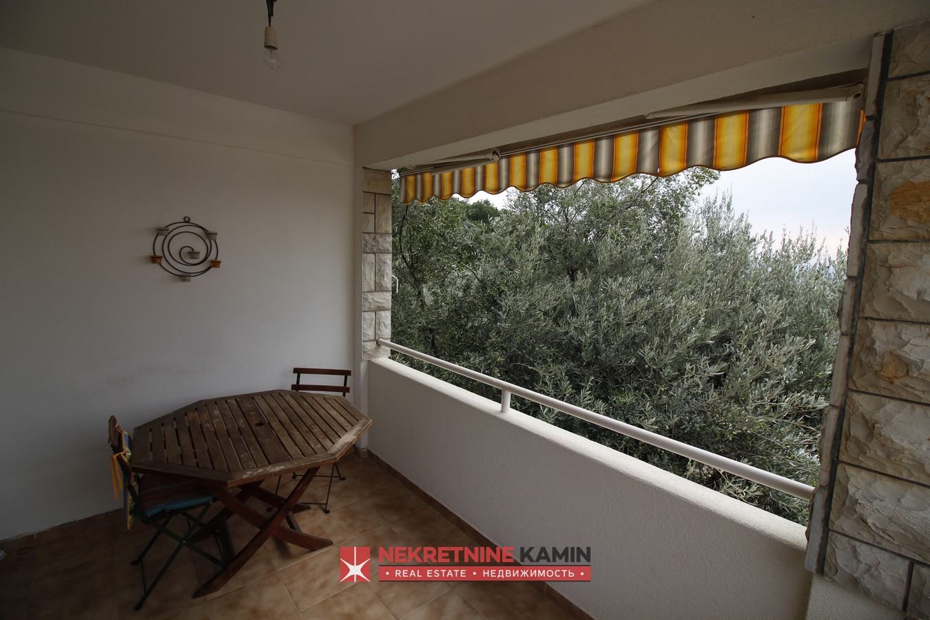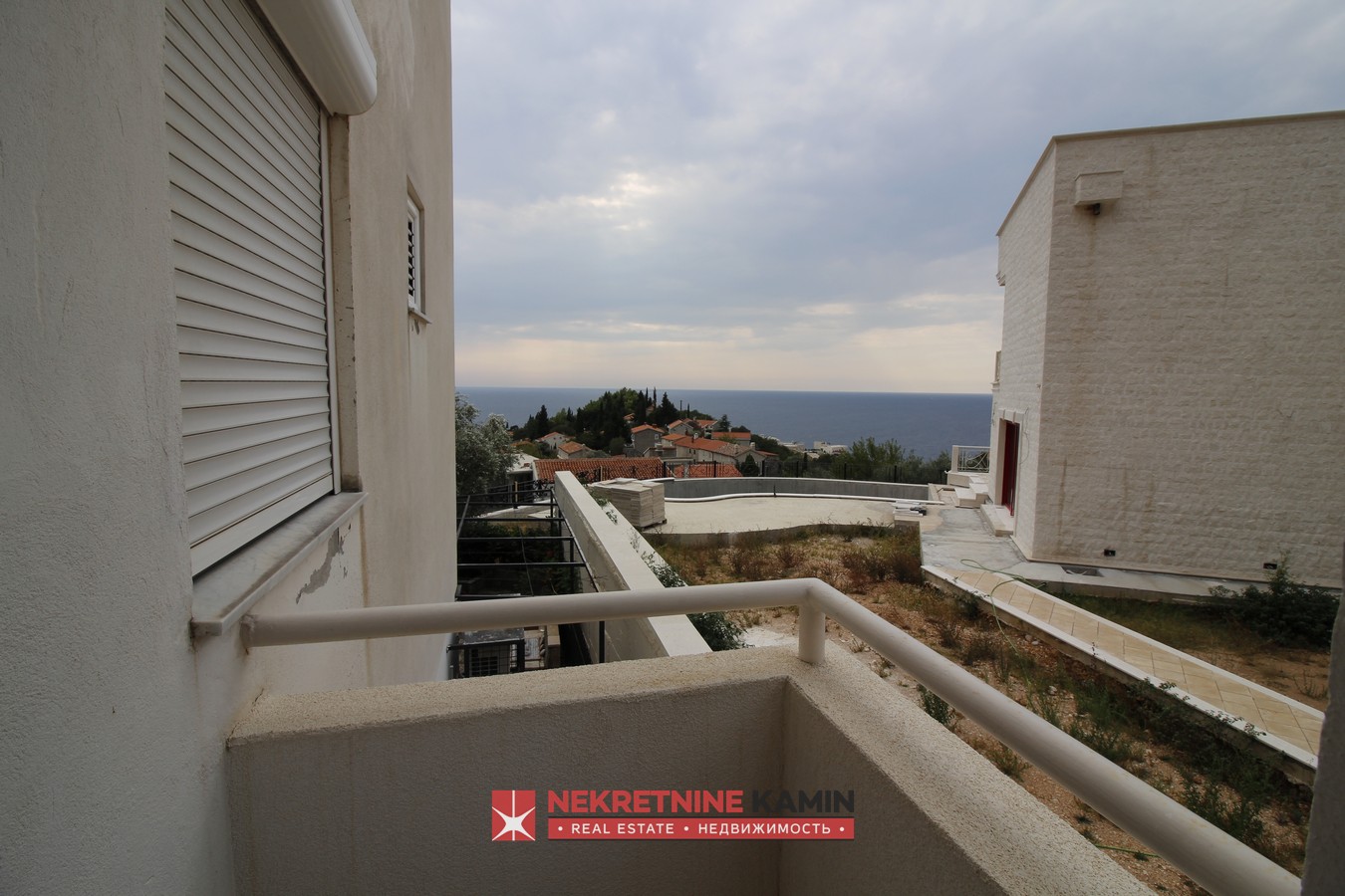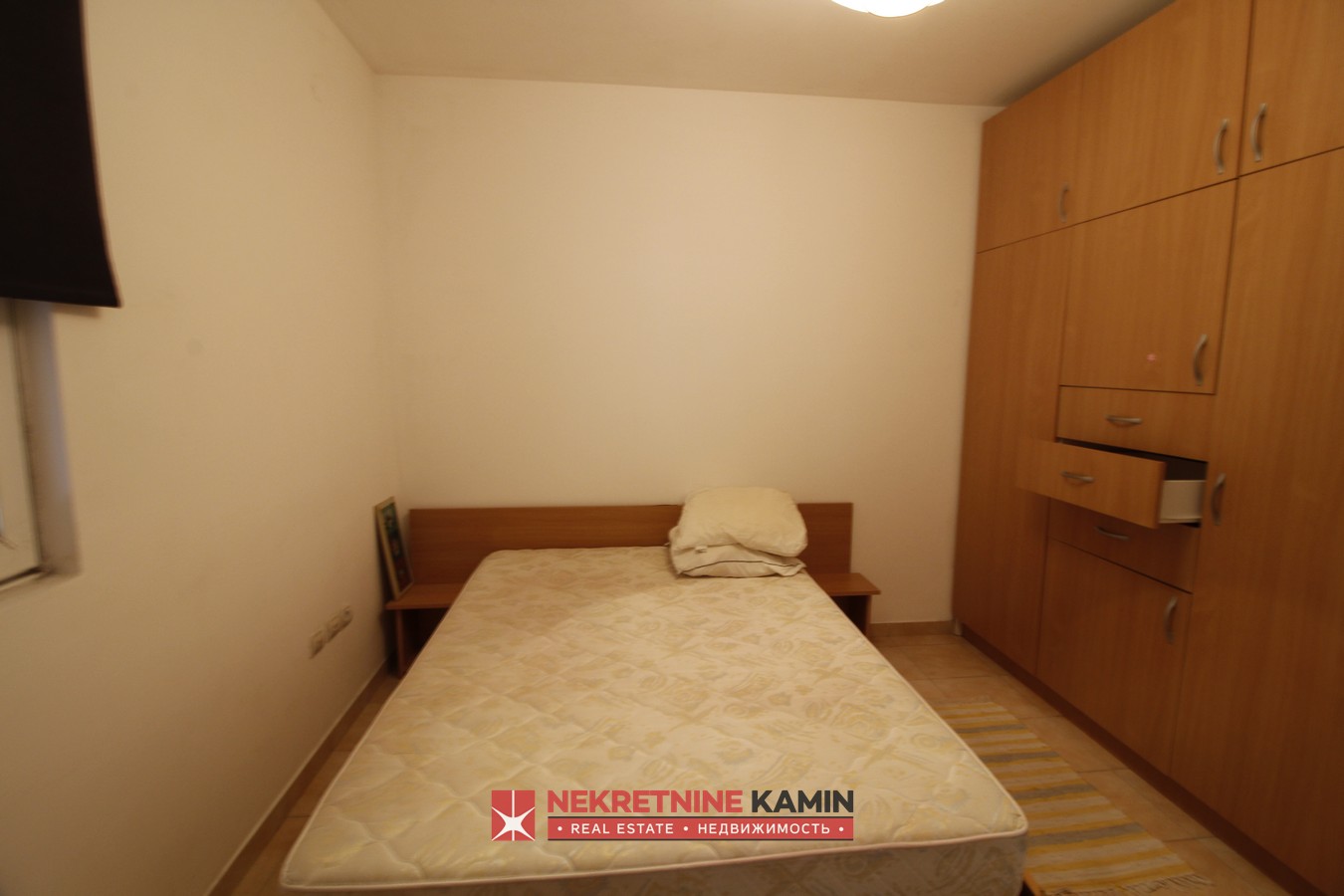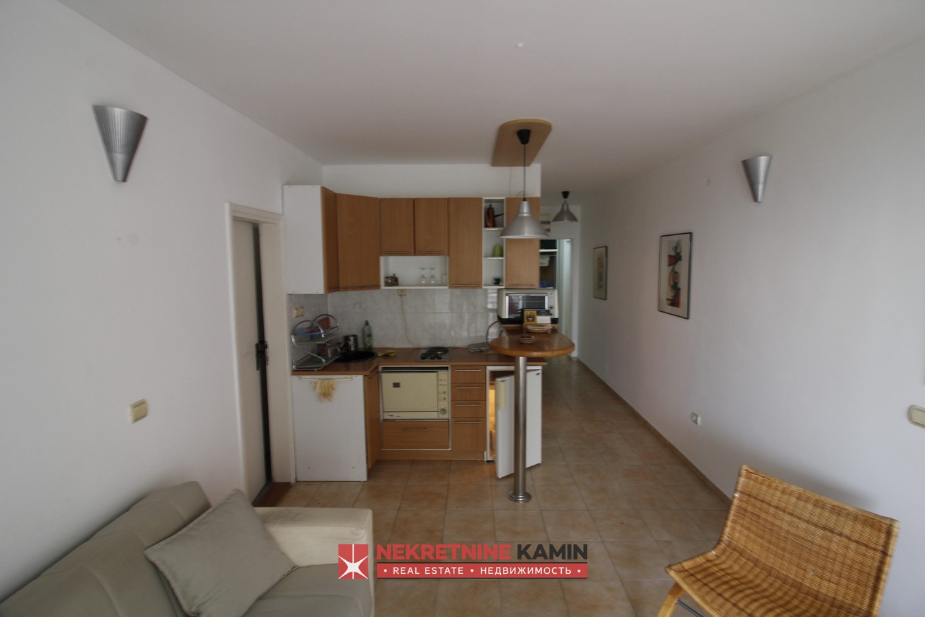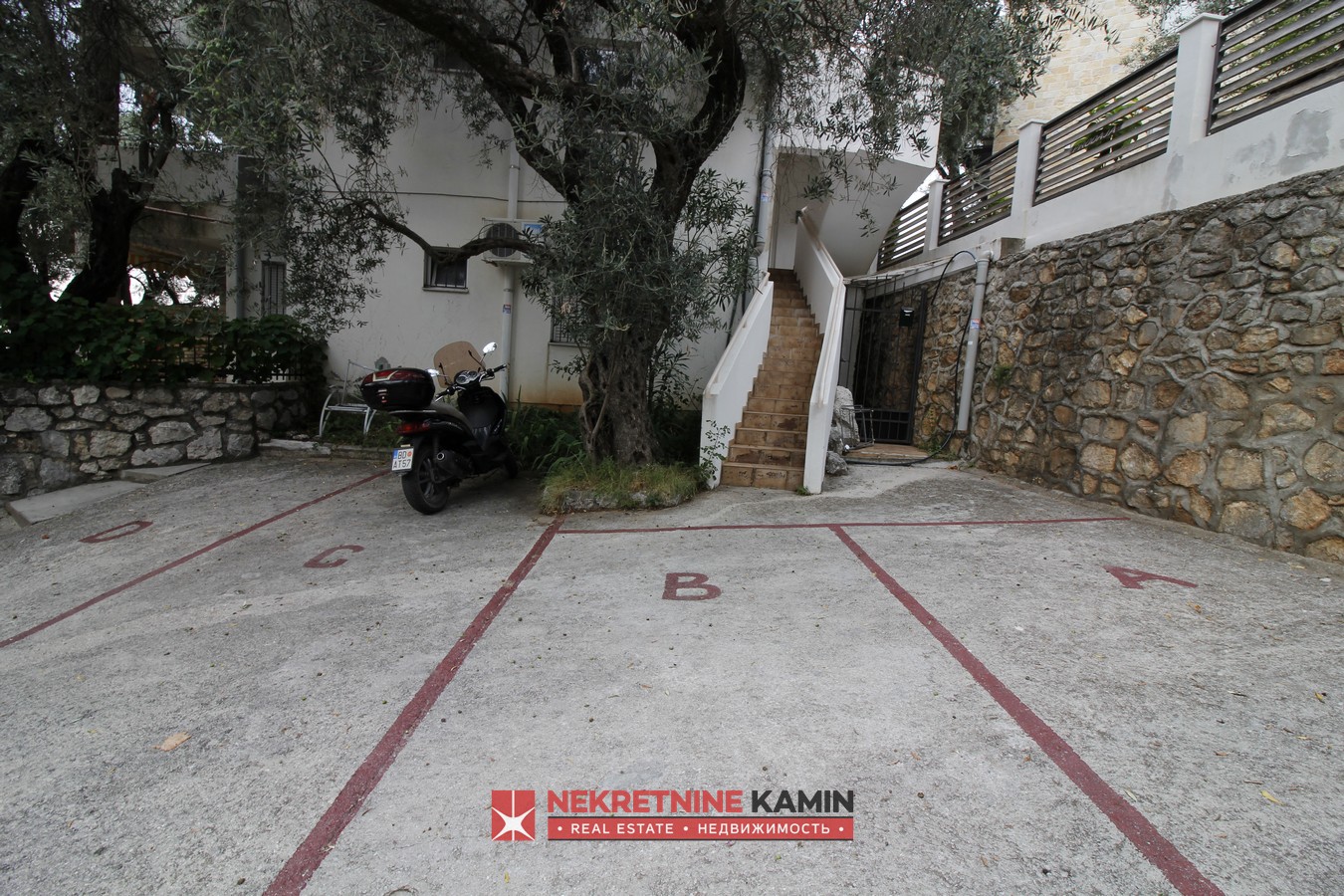Stan se nalazi u maloj stambenoj zgradi (svega 5 apartmana) na prvom spratu. Sastoji se od hodnika, dnevnog boravka sa izlaskom na prelijepu terasu otvorenog pogleda na more, dvije spavaće sobe od kojih manja ima mali balkon, kupatilo komplet renovirano.