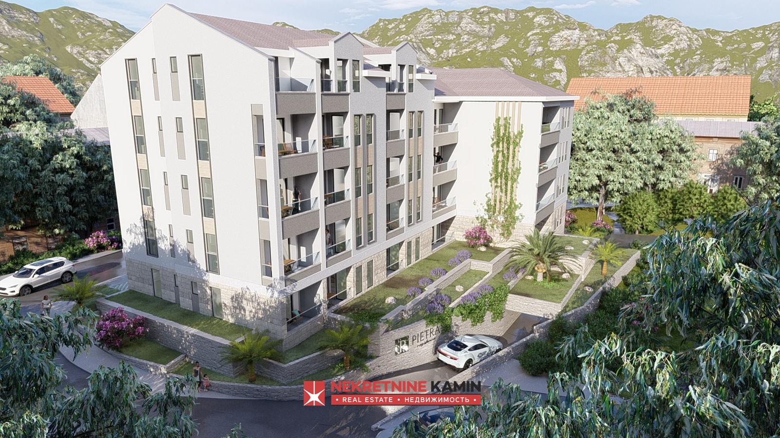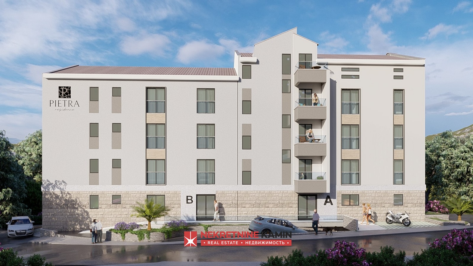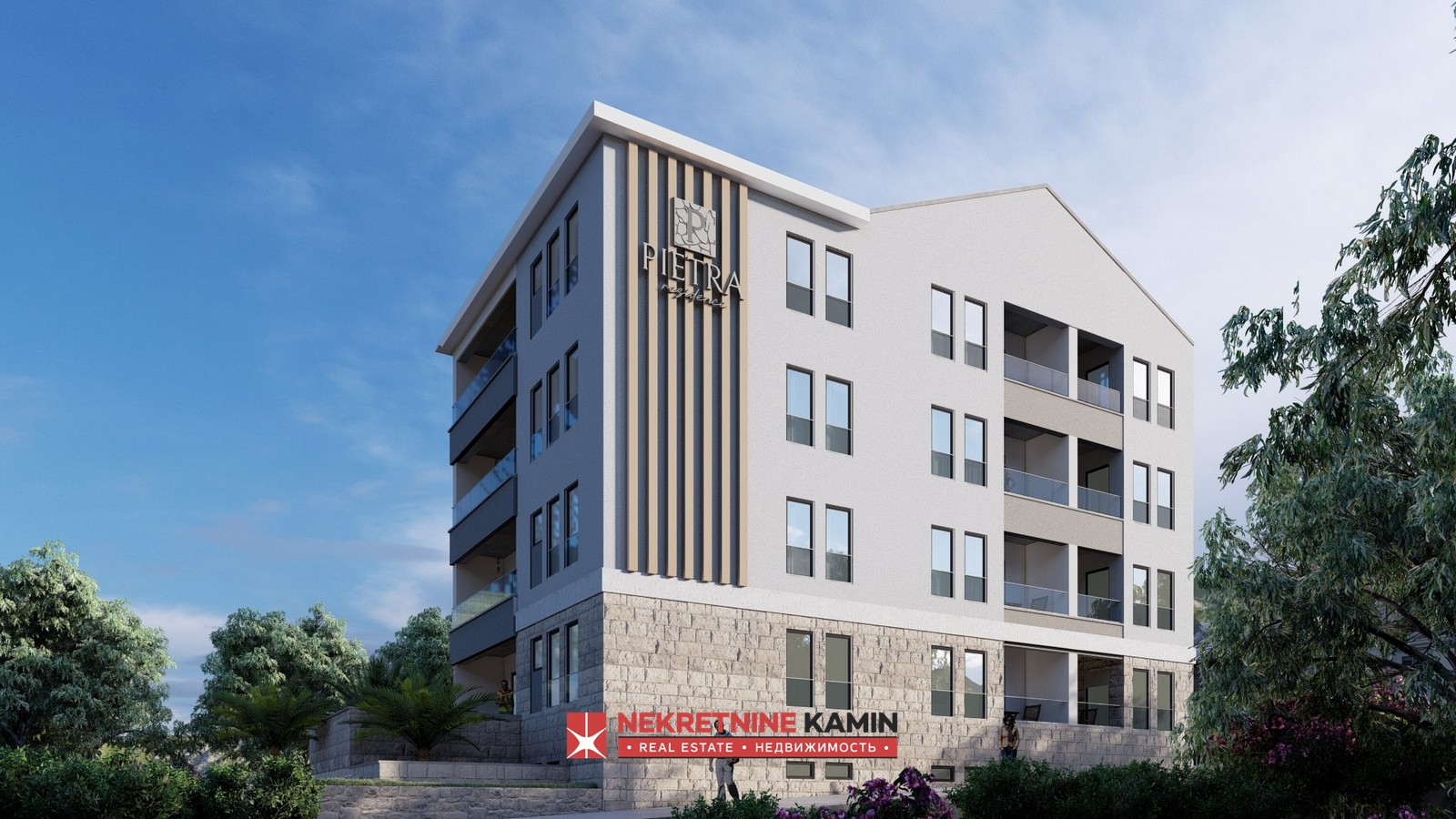 Stan zauzima površinu od 42 m2 i nalazi se u stambenom kompleksu " Pietra Residence", premijum klase u izgradnji, u mirnom dijelu Budve, naselje Podkošljun, na samo 4 minuta vožnje od plaže.