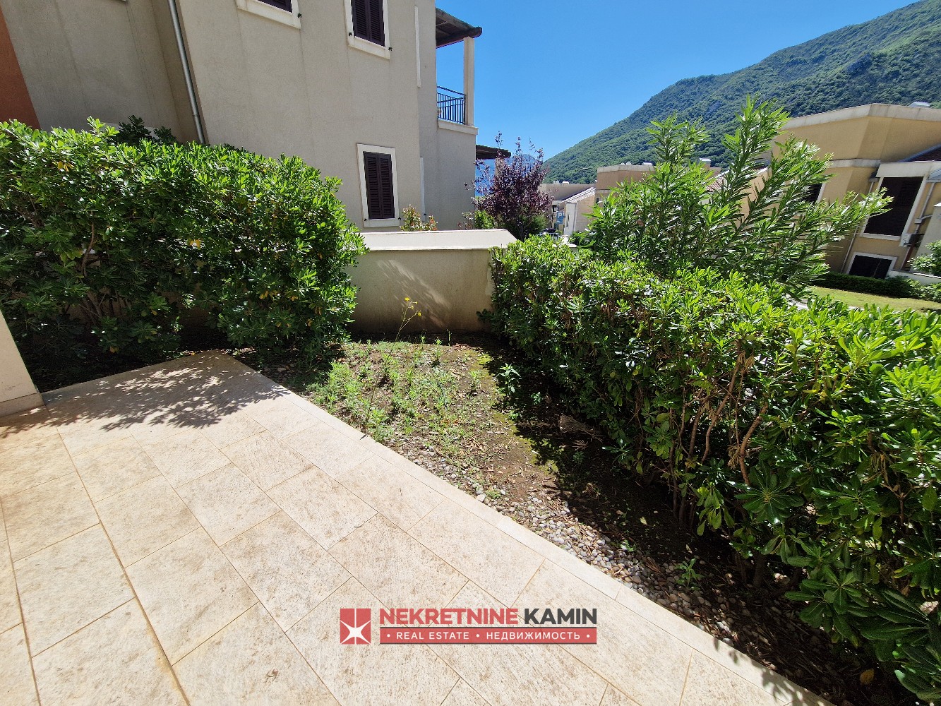 Struktura: dnevni boravak sa kuhinjom i trpezarijom, 2 spavaće sobe, terasa sa izlazim na dvorište, 2 kupatila (sa kadom i tuš kabinom). Velika prednost ove nekretnine je zelene dvoriste, što se odnosi samo na ovaj stan.