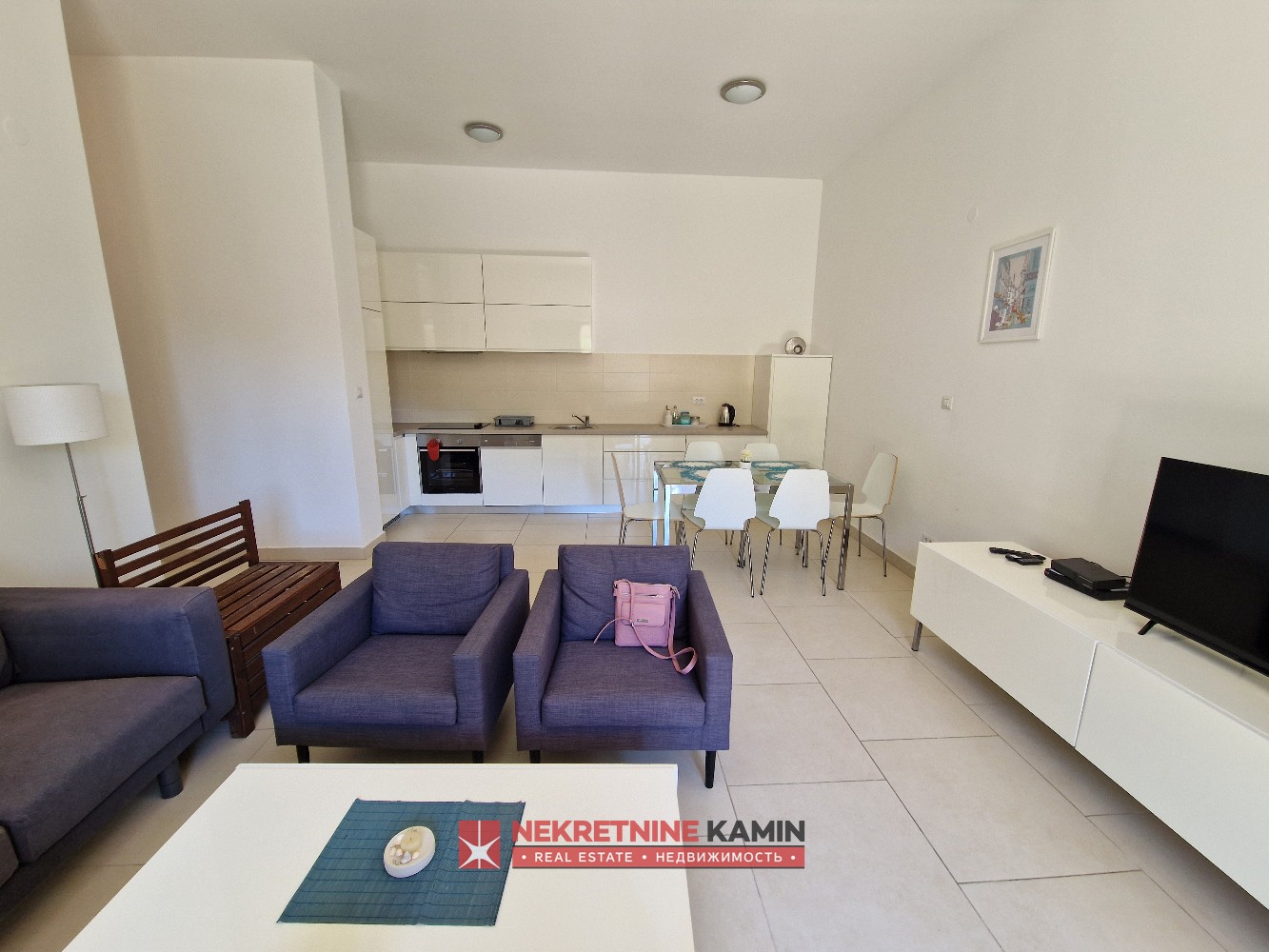Stan je potpuno opremljen namještajem i tehnikom. Podno grijanje u kupaonicama.