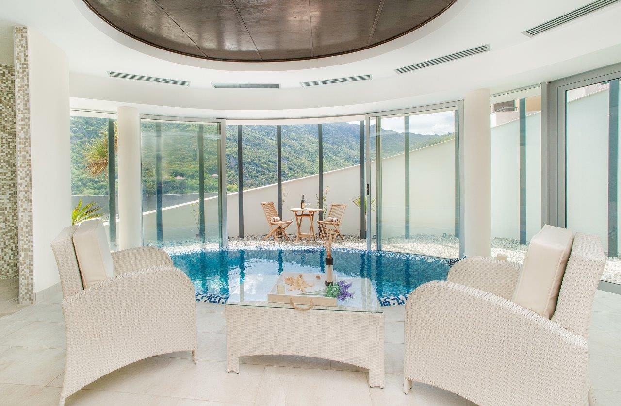 Kompleks ima infinity bazen s prostorom za sjedenje i panoramskim pogledom na Boku Kotorsku. Osim toga, kompleks uključuje Club House Spa, gđe gosti mogu uživati u finskoj sauni, marokanskom hamamu, hidromasažnoj kadi i cijelom nizu spa usluga.