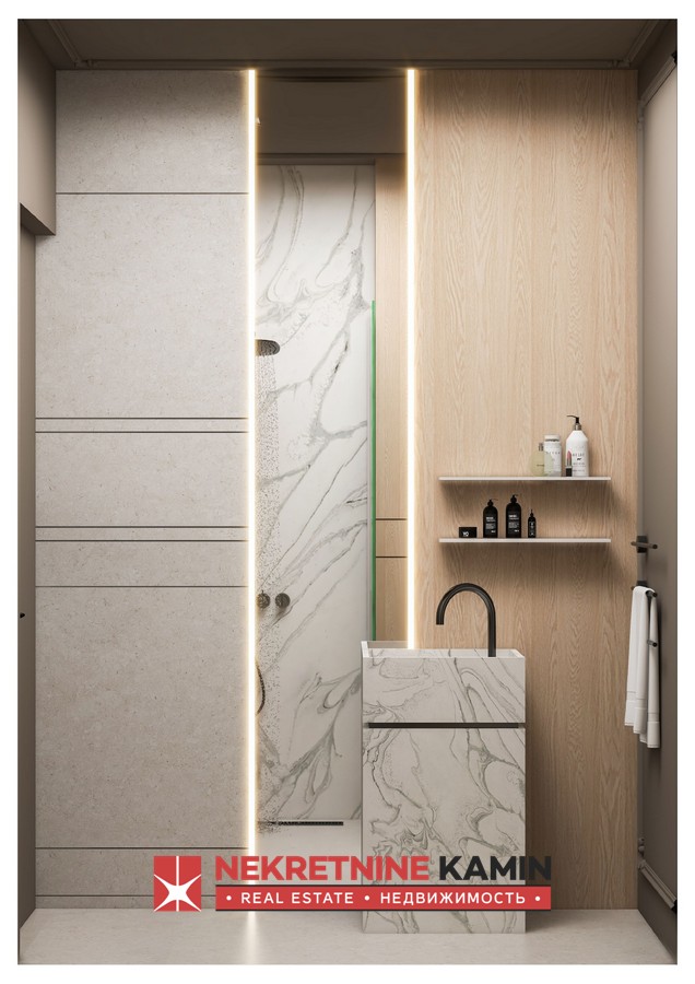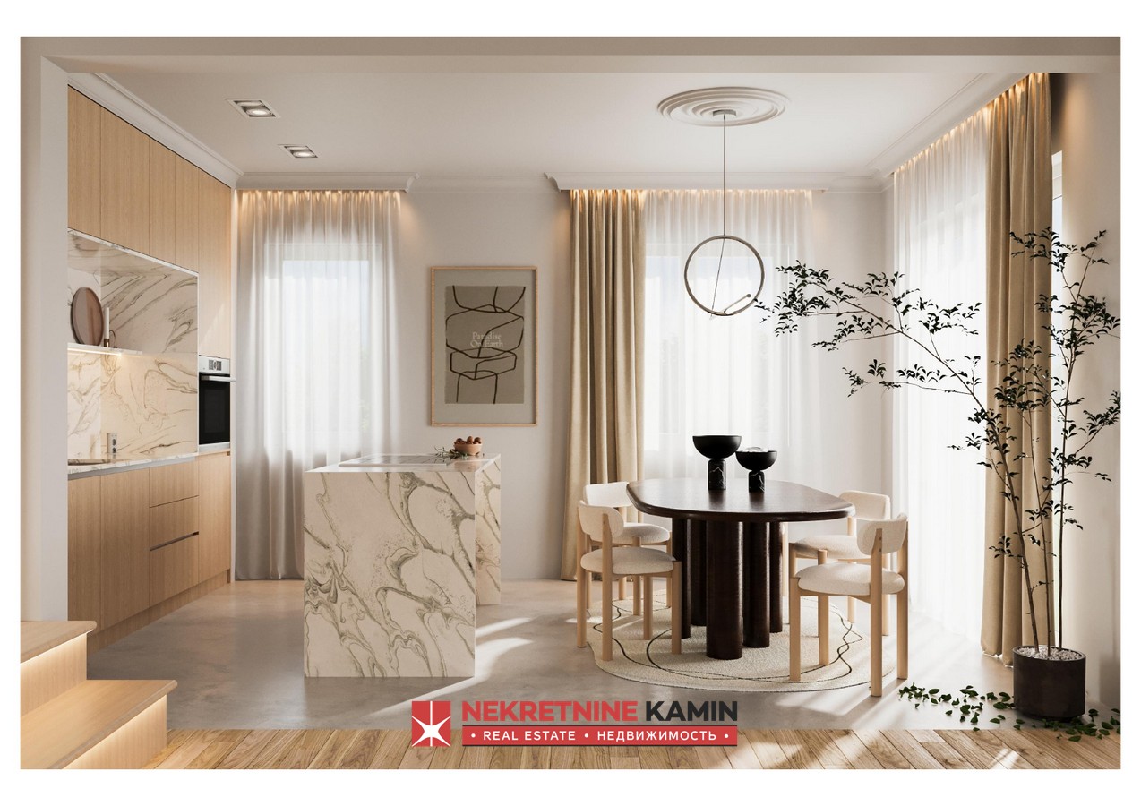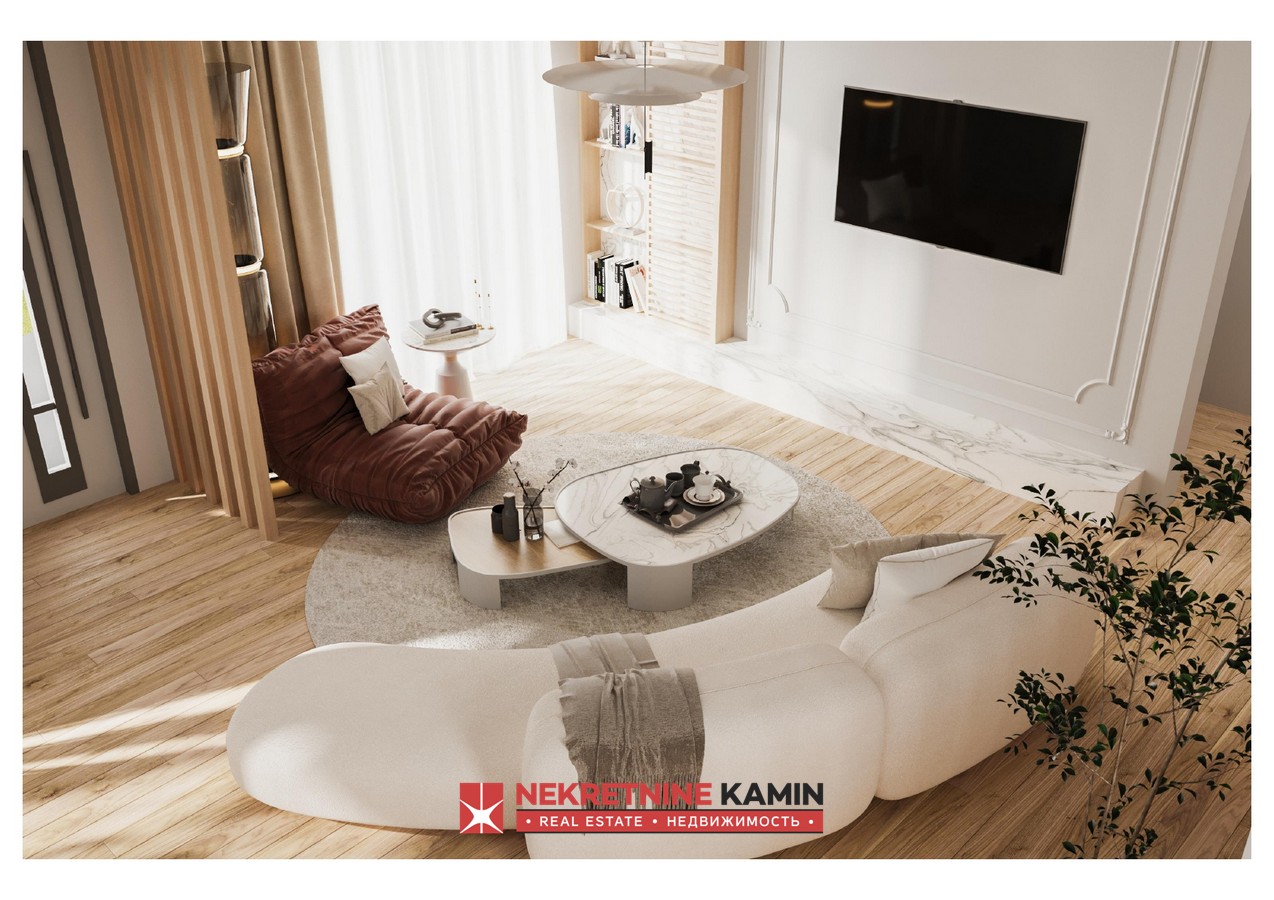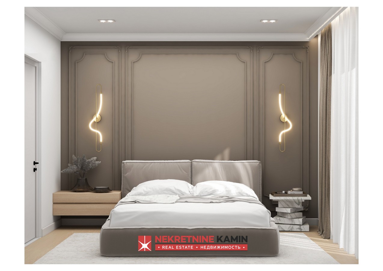 Ova nekretnina će se sastojati od 4 spavaće sobe sa terasama, 4 kupatila, kuhinje, trpezarije, velikog dnevnog boravka sa izlazom na terasu sa prelivnim bazenom i spektakularnim pogledom na tivatski zaliv.