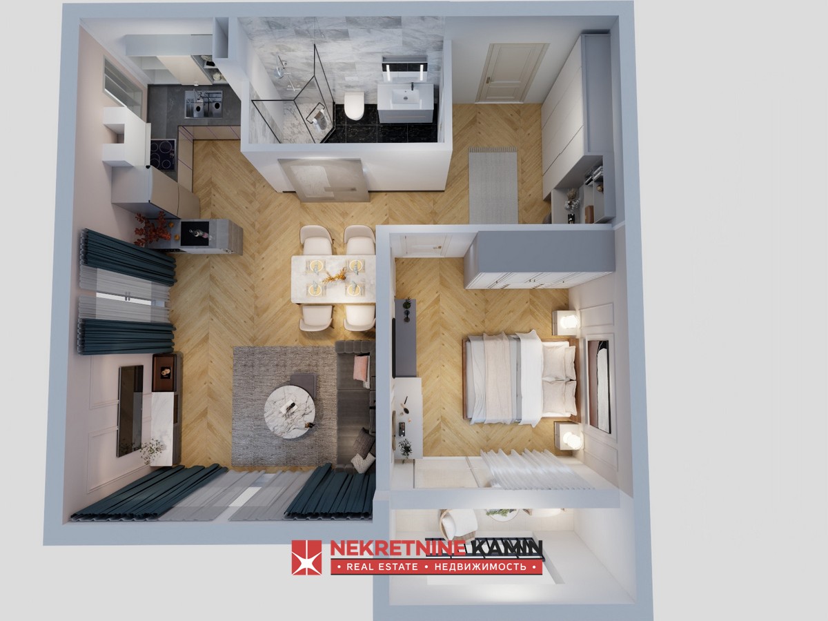Pored jednosobnih stanova, u ovom objektu se prodaju i studio apartmani površine 26m2 i 29m2.
