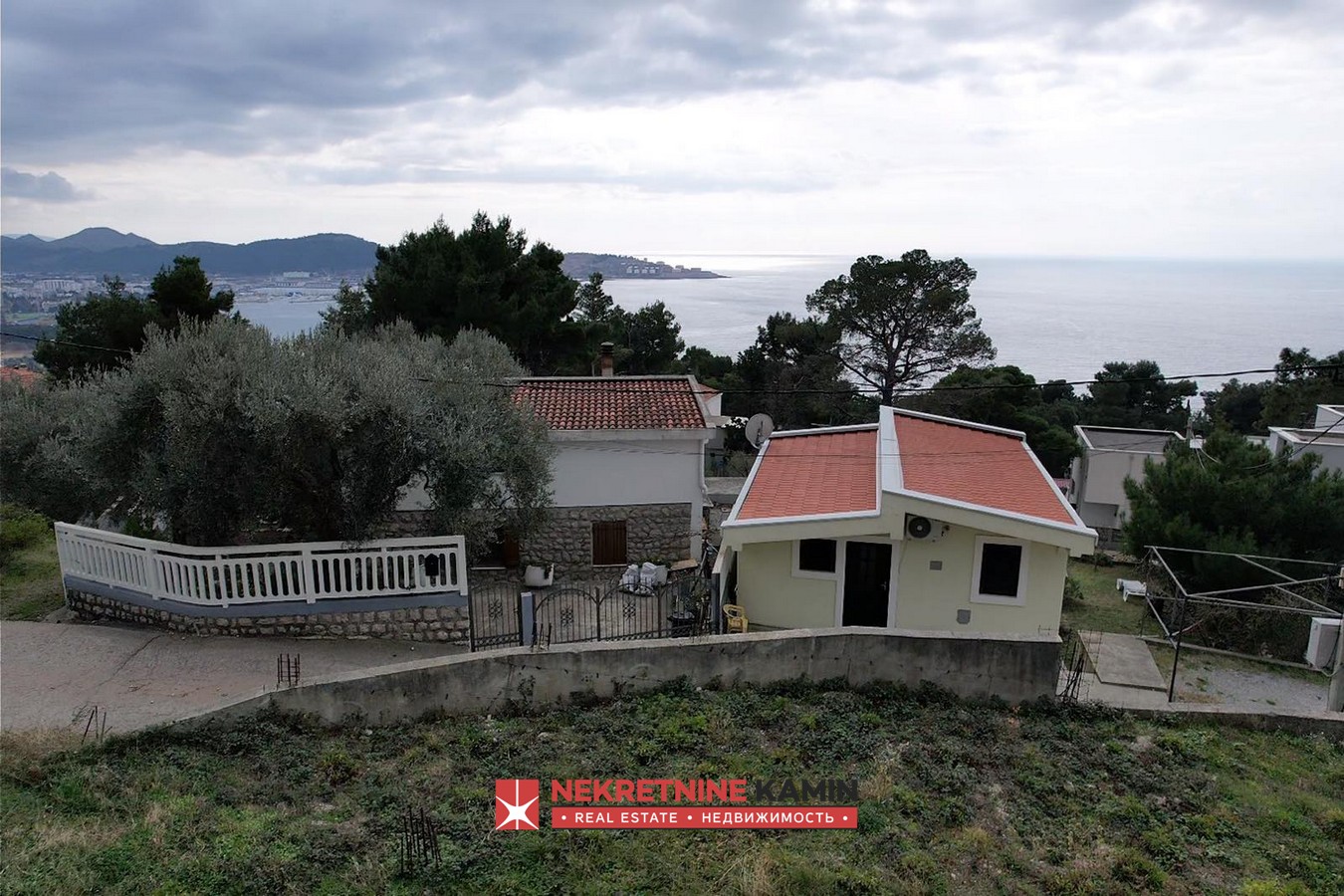 Na prodaju dve kuće na manje od 150 metara od mora, Bar, UtjehaPovršina placa: 411m2Površina kuća: 229m2 (255m2 bruto)Veća kuće: prizemlje:...