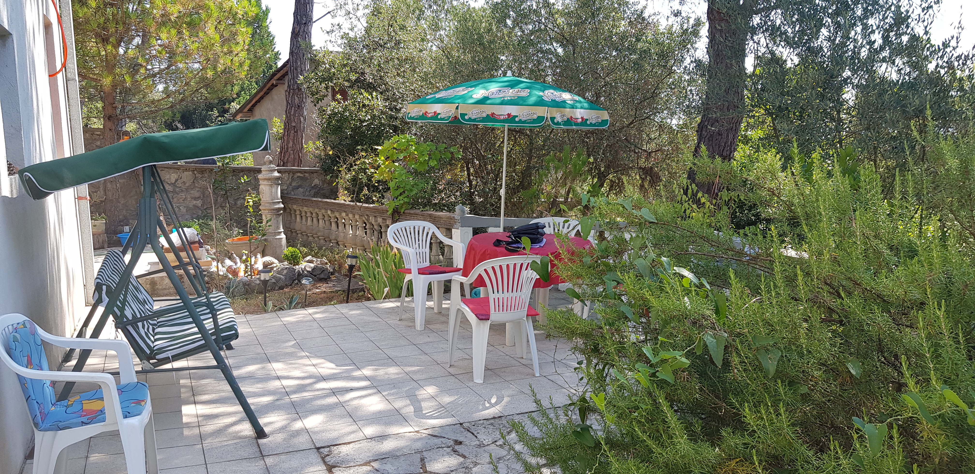 Kuća se nalazi na placu od 312m2 (dvorište 256m2). Oko kuće je borova šuma i masline.