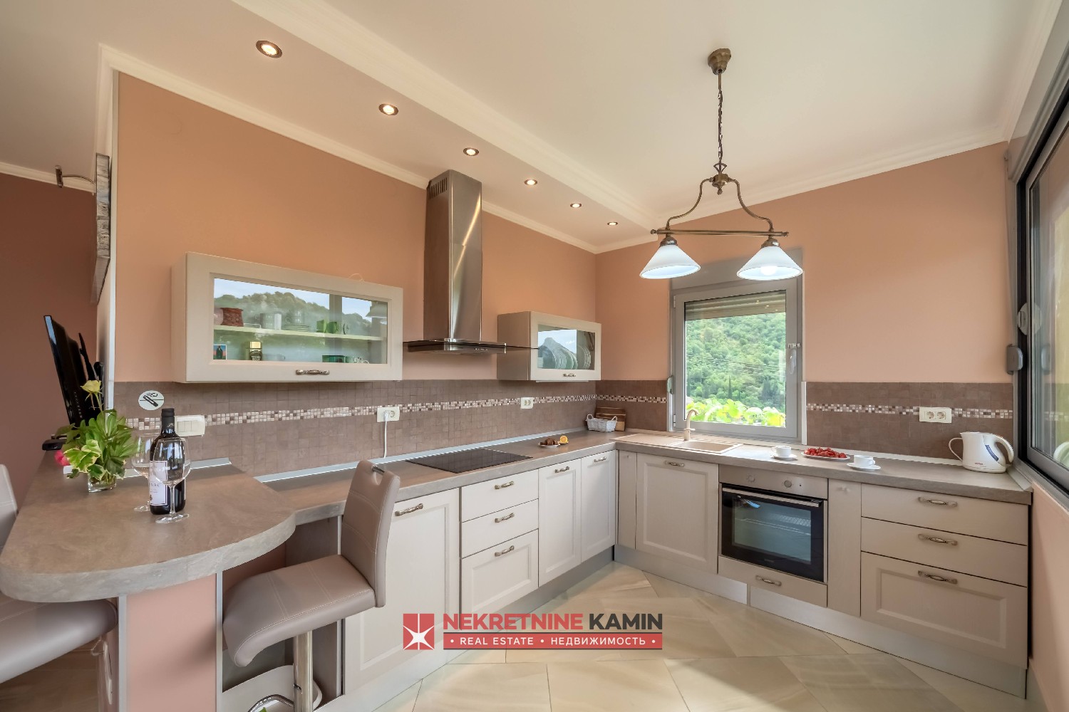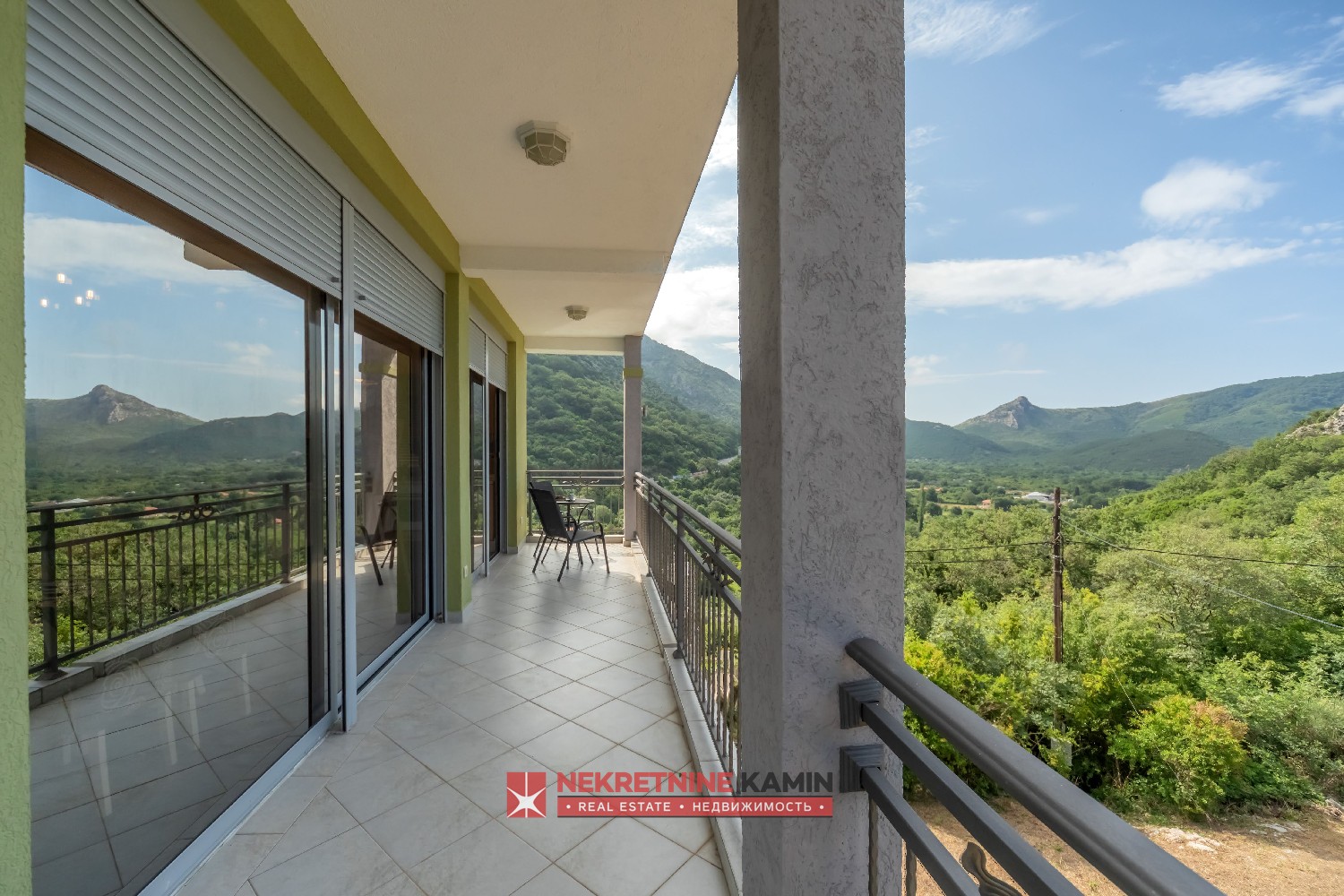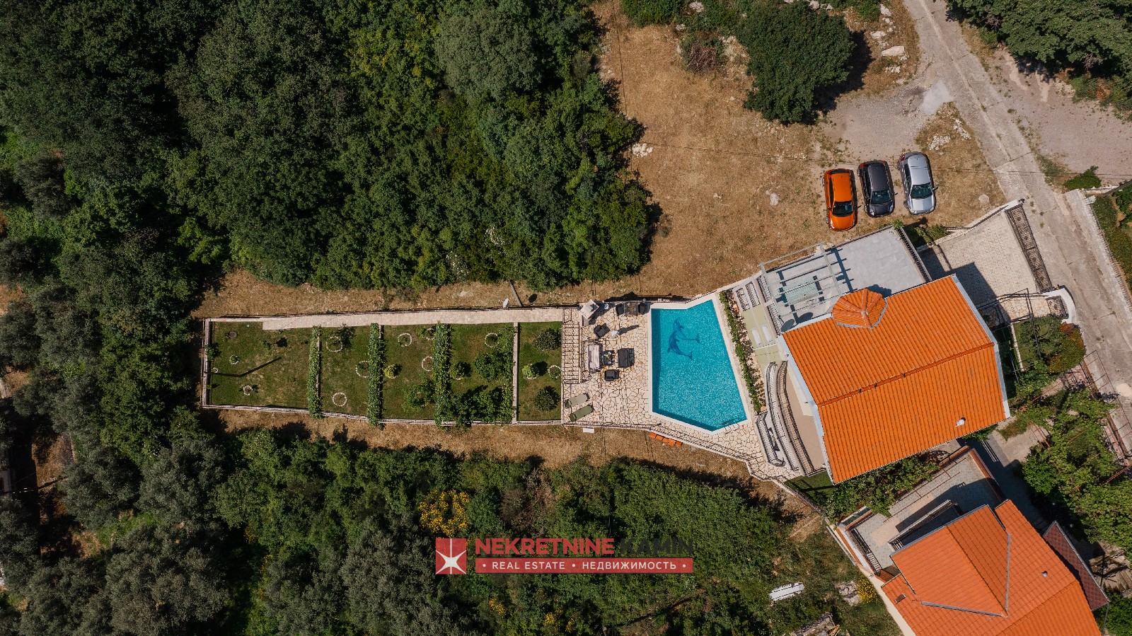 Predstavljamo vam veličanstvenu kuću, uronjenu u zelenilo, smeštenu u mirnom i slikovitom kraju Crne Gore. Ovde se spajaju prelepi pogledi na planine i more, stvarajući jedinstvenu atmosferu udobnosti i mira. Ova kuća je idealna kombinacija privatnosti i blizine savremene infrastrukture.