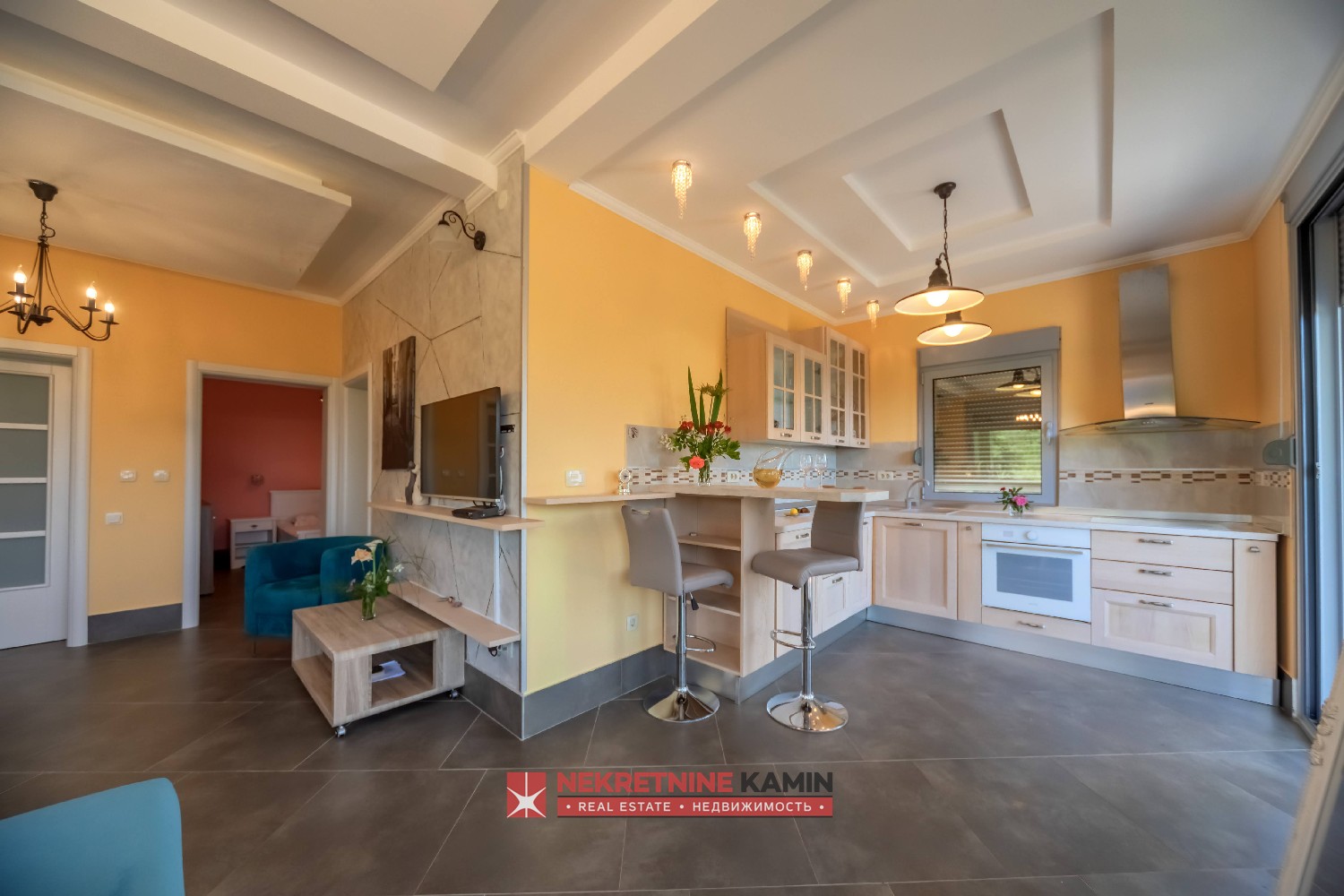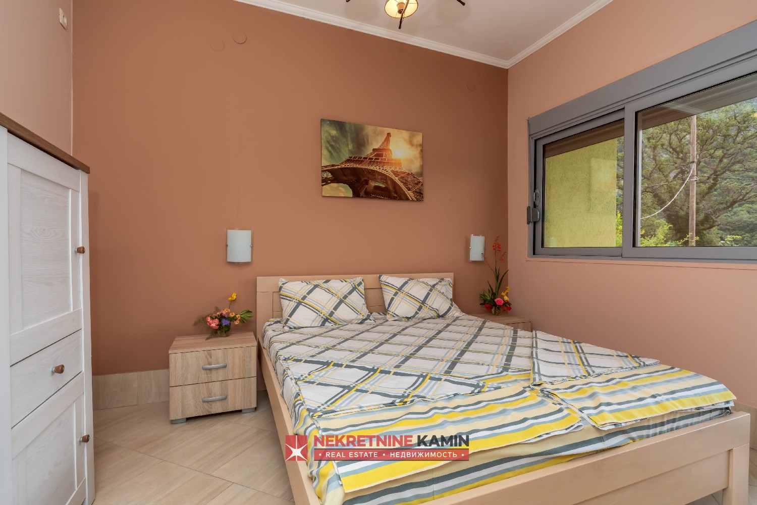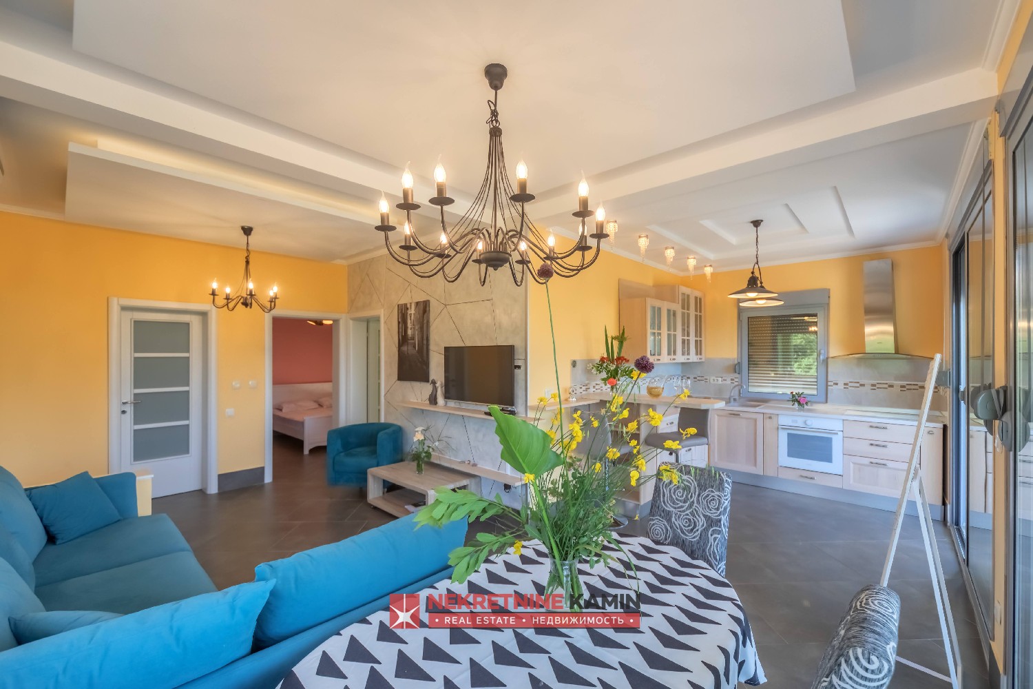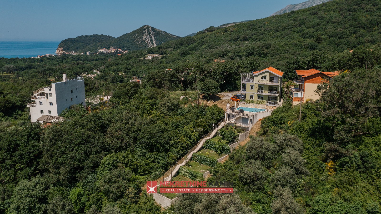 Predstavljamo vam veličanstvenu kuću, uronjenu u zelenilo, smeštenu u mirnom i slikovitom kraju Crne Gore. Ovde se spajaju prelepi pogledi na planine i more, stvarajući jedinstvenu atmosferu udobnosti i mira. Ova kuća je idealna kombinacija privatnosti i blizine savremene infrastrukture.