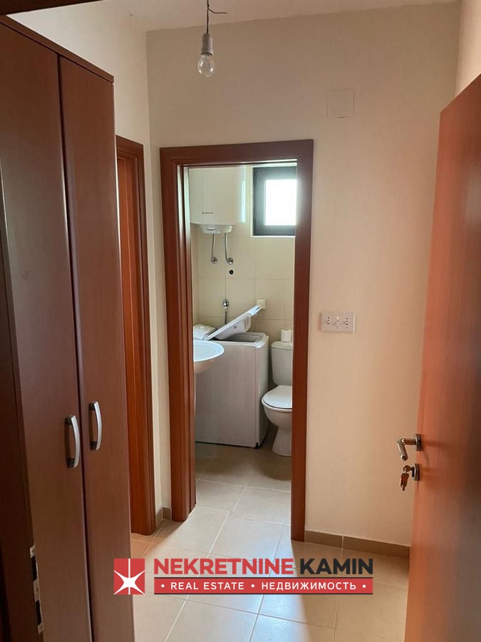 Rasporedjen je na predsoblje, dnevni boravak sa trpezarijom i kuhinjom, spavaću sobu, kupatilo i terasu sa koje se pruža djelimican pogled na more.