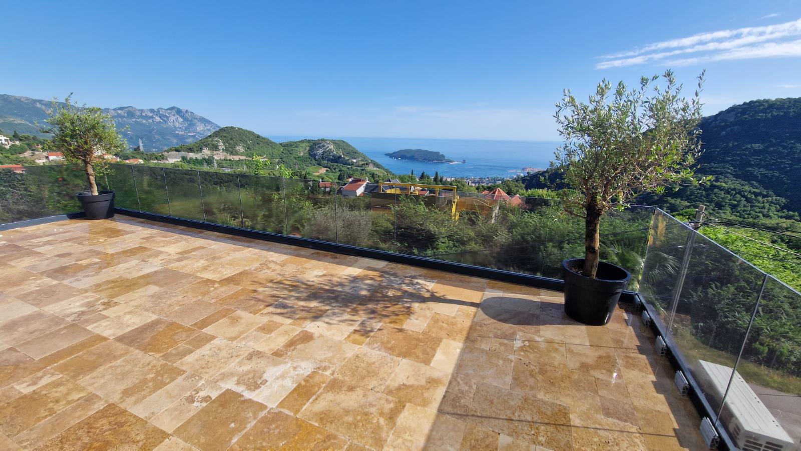 Ova nekretnina ima divan pogled na more, ostrvo Svetog Nikolu kao i na cijelu Budvu.