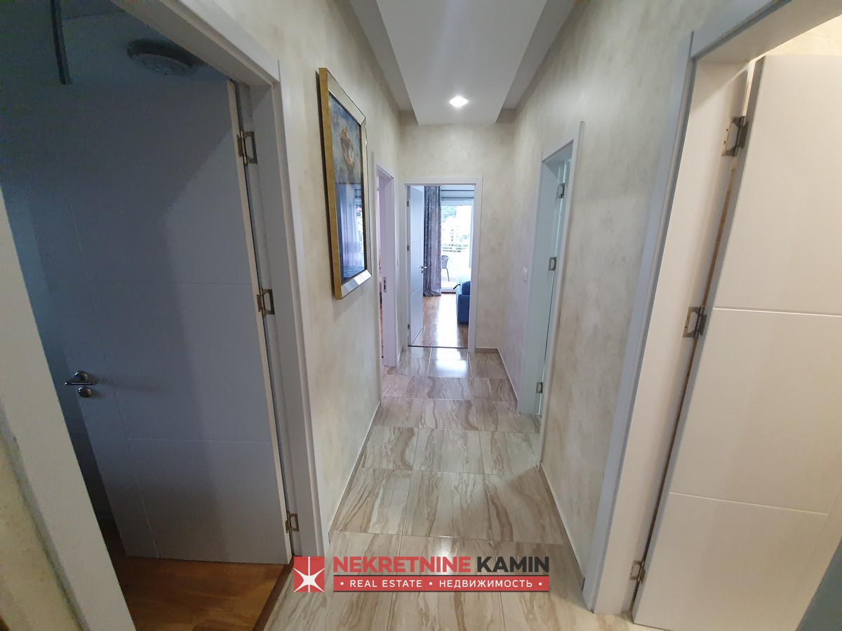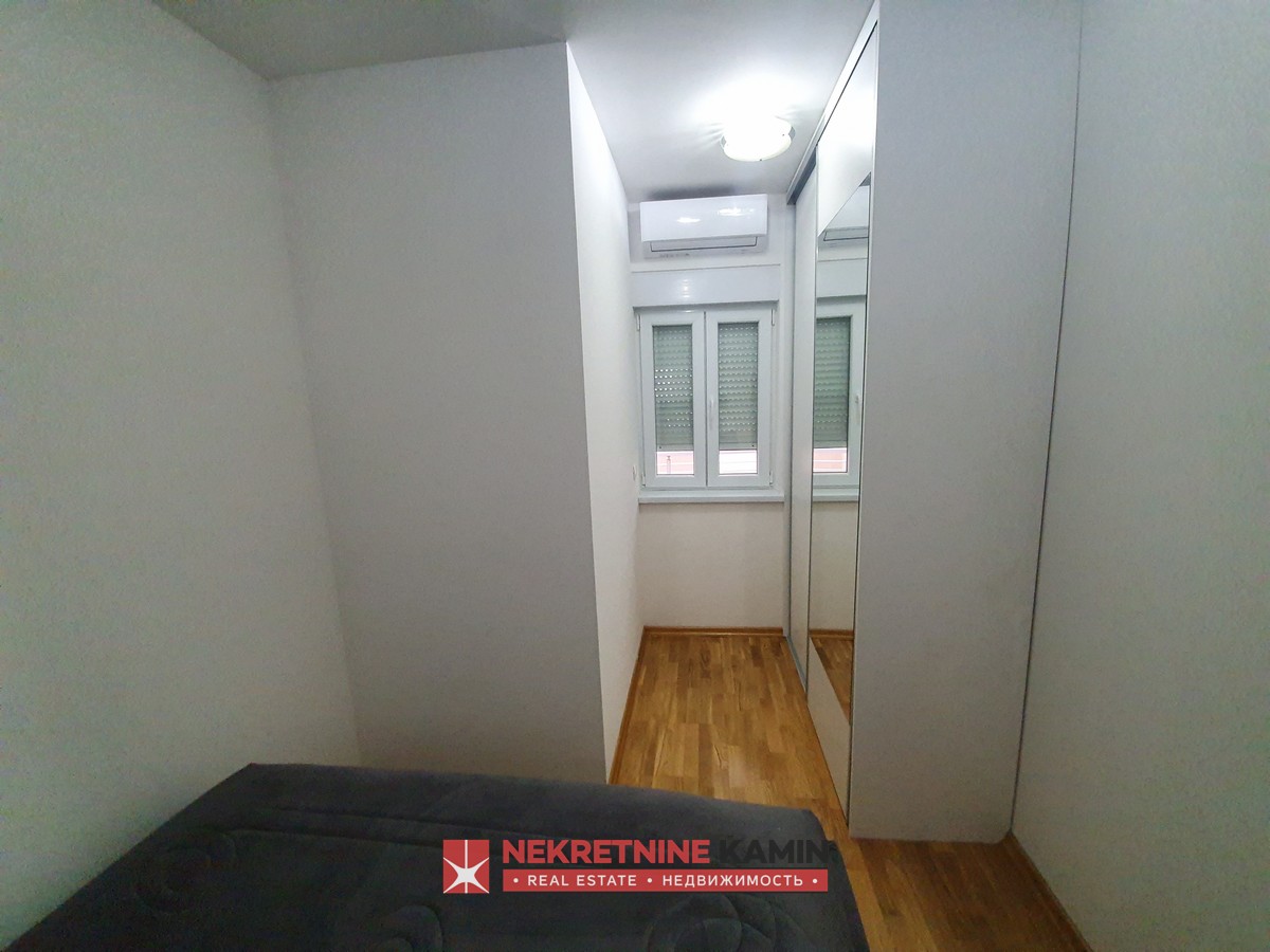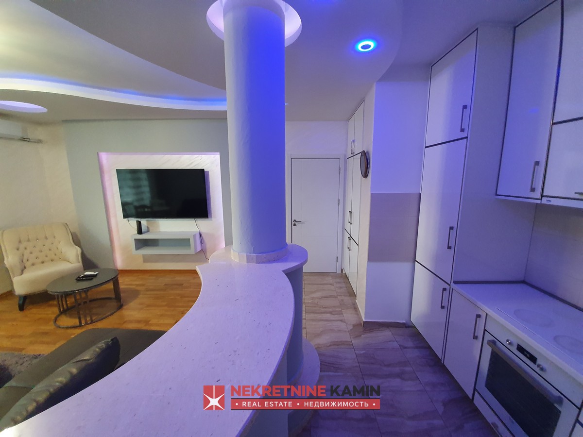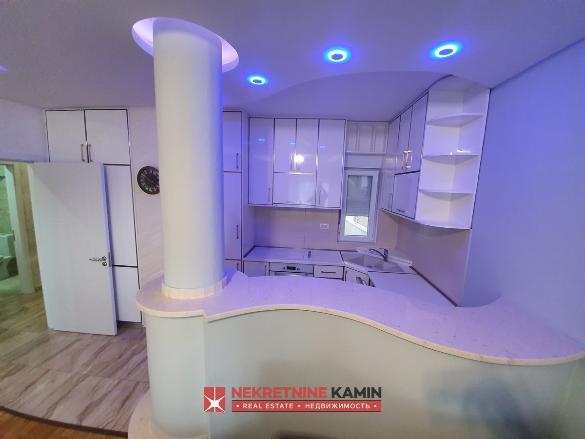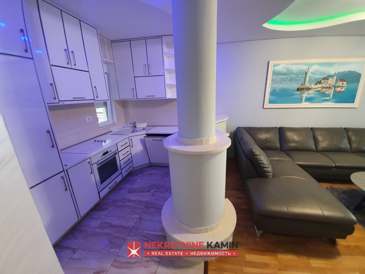 Nalazi se na II spratu stambene zgrade i kompletno je opremljen modernim namještajem po mjeri i kvalitetnom bijelom tehnikom.