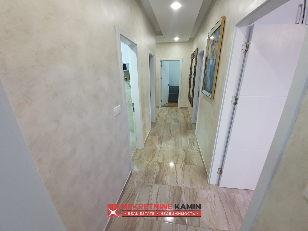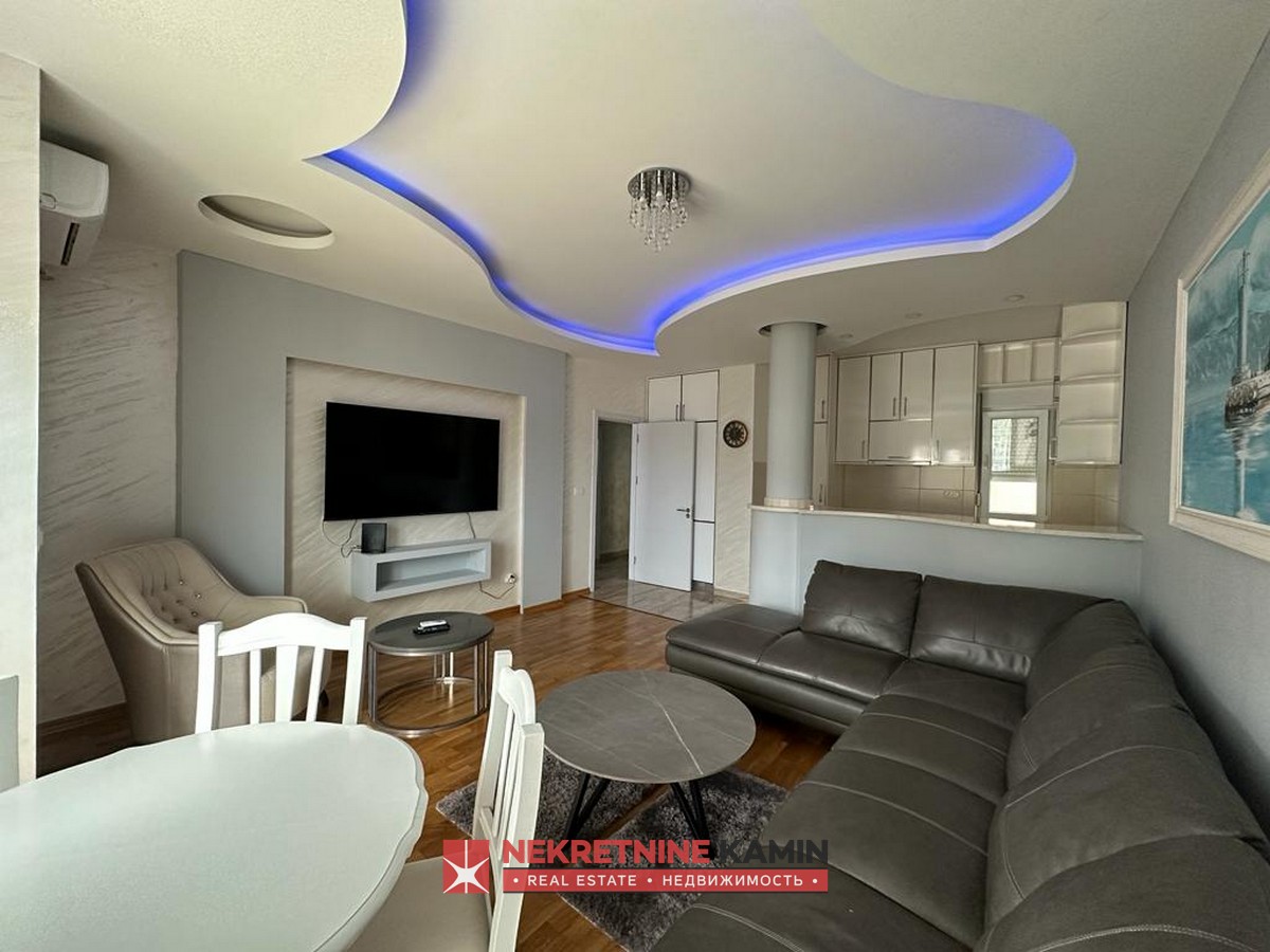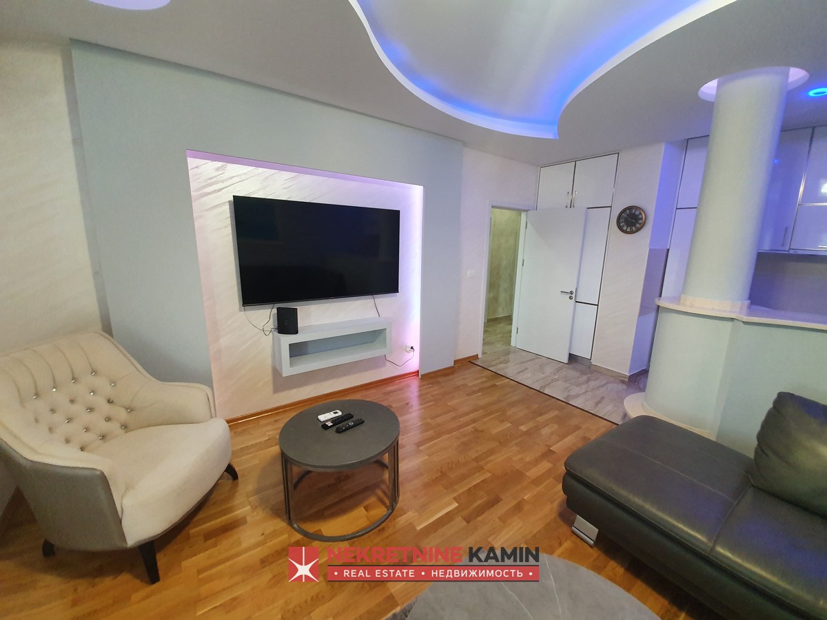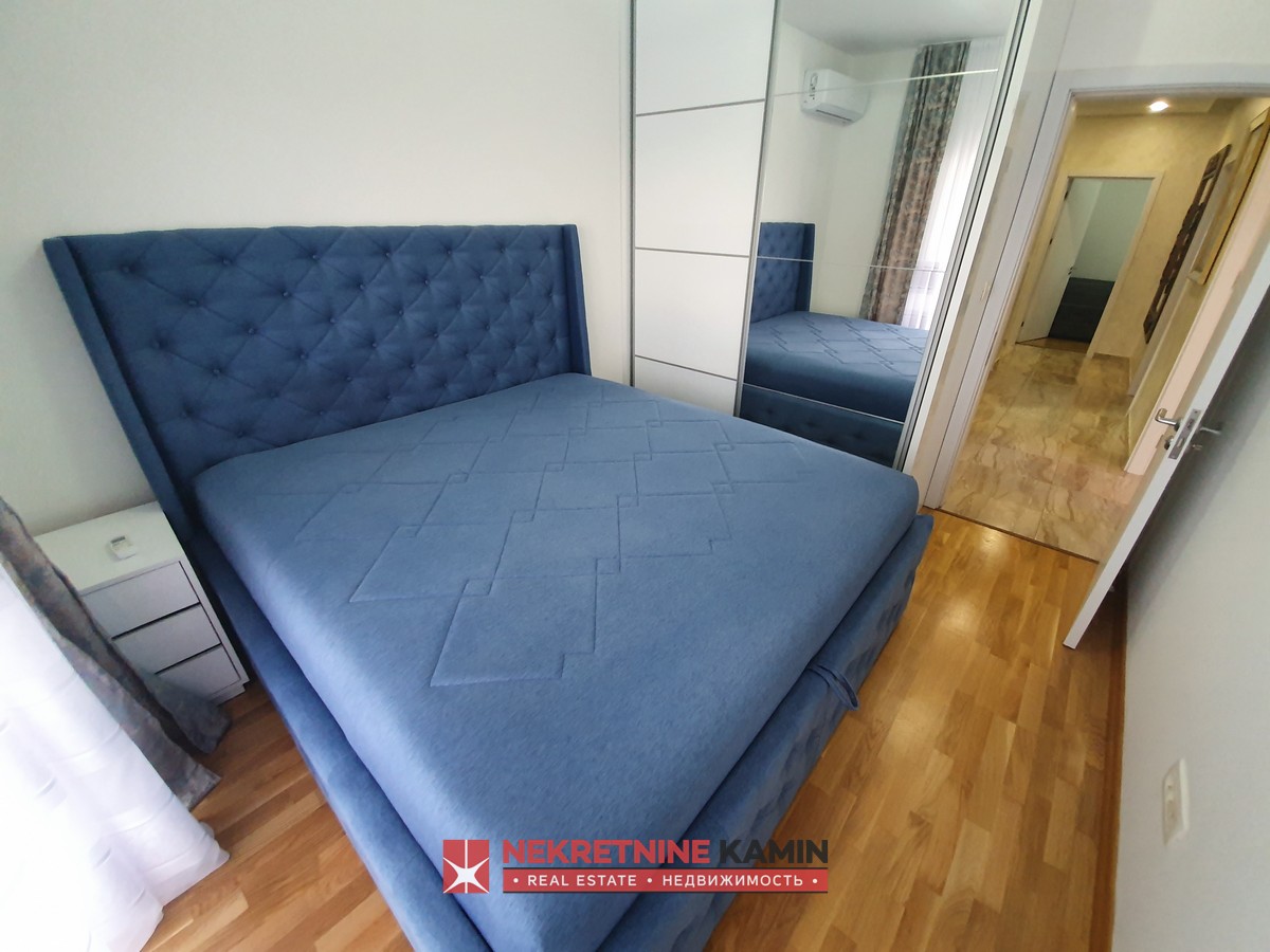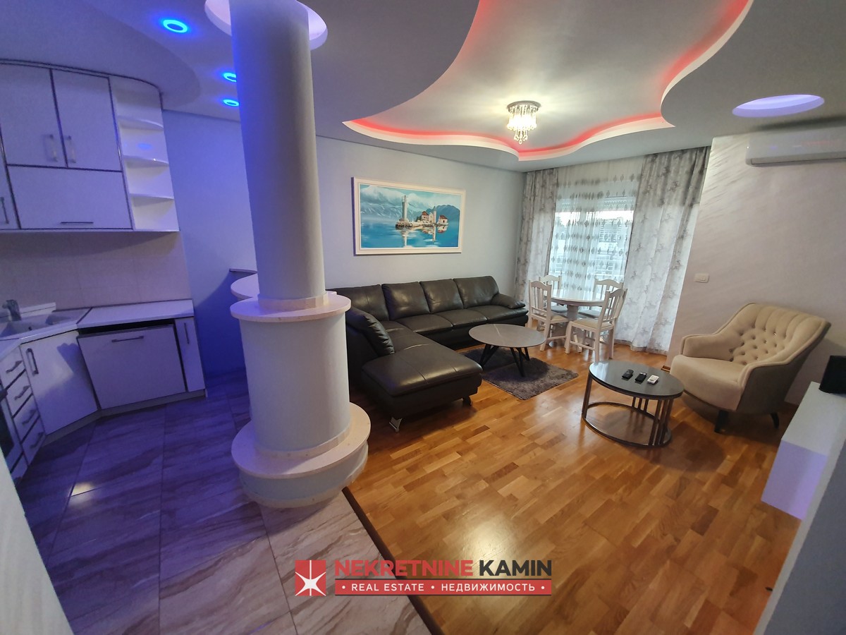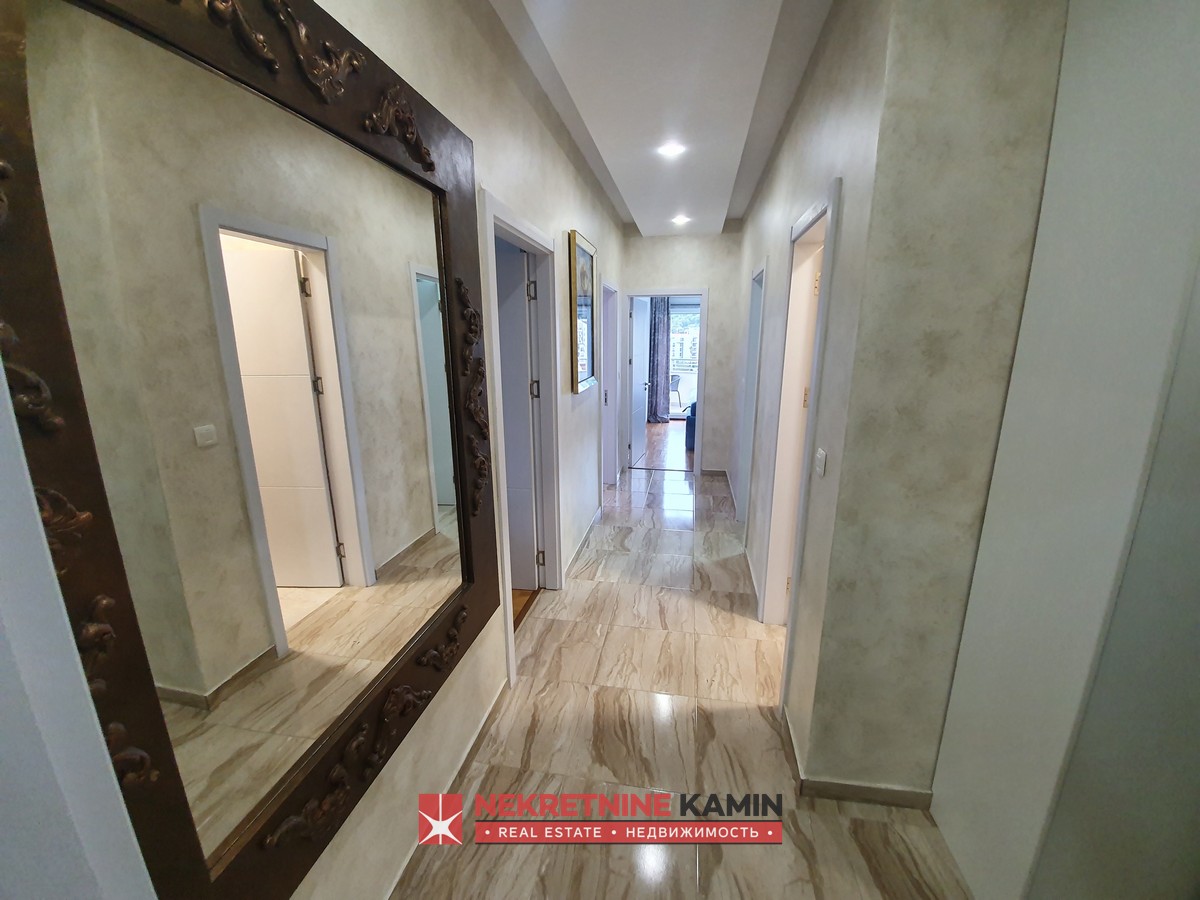 Nalazi se na II spratu stambene zgrade i kompletno je opremljen modernim namještajem po mjeri i kvalitetnom bijelom tehnikom.