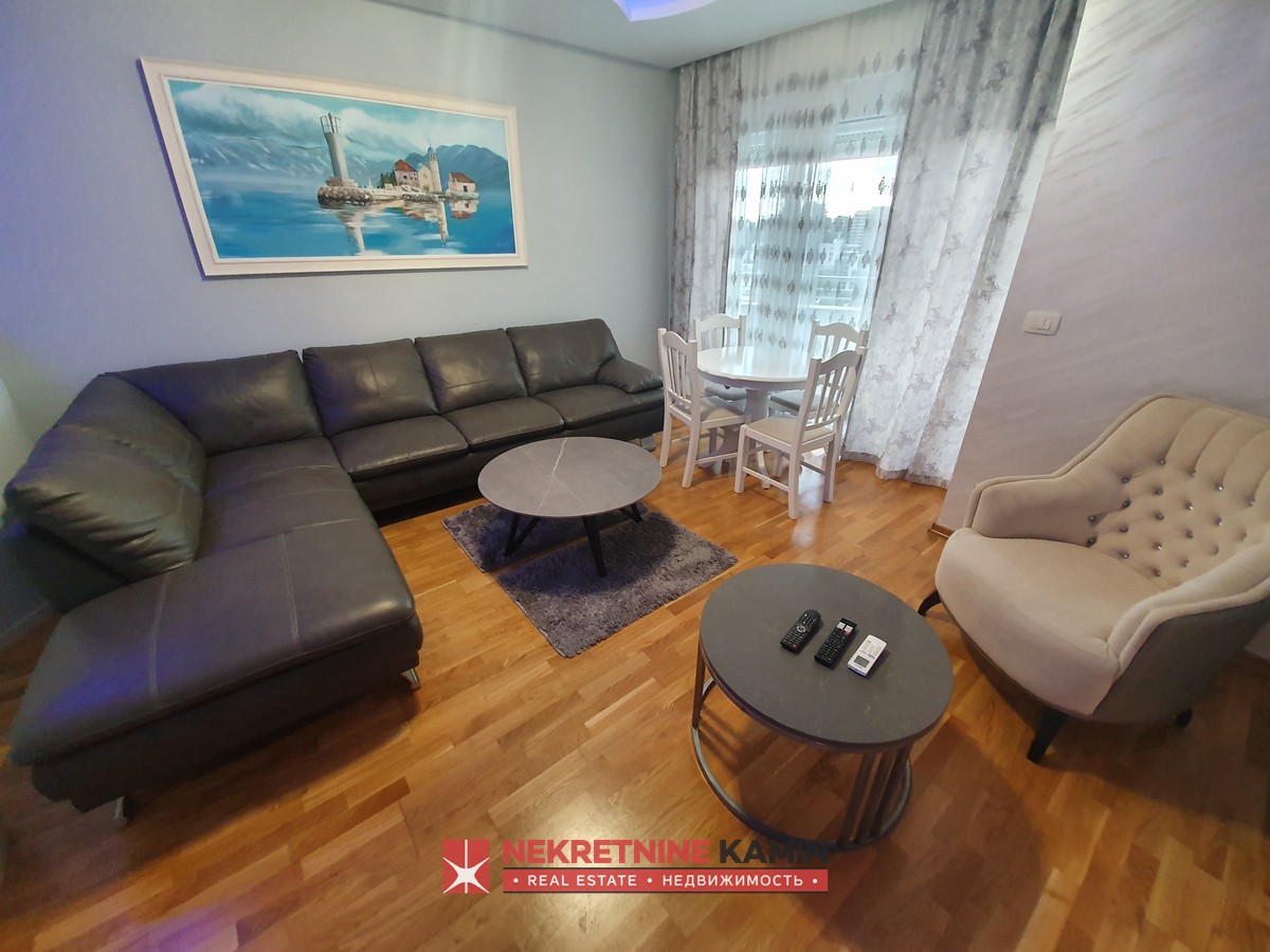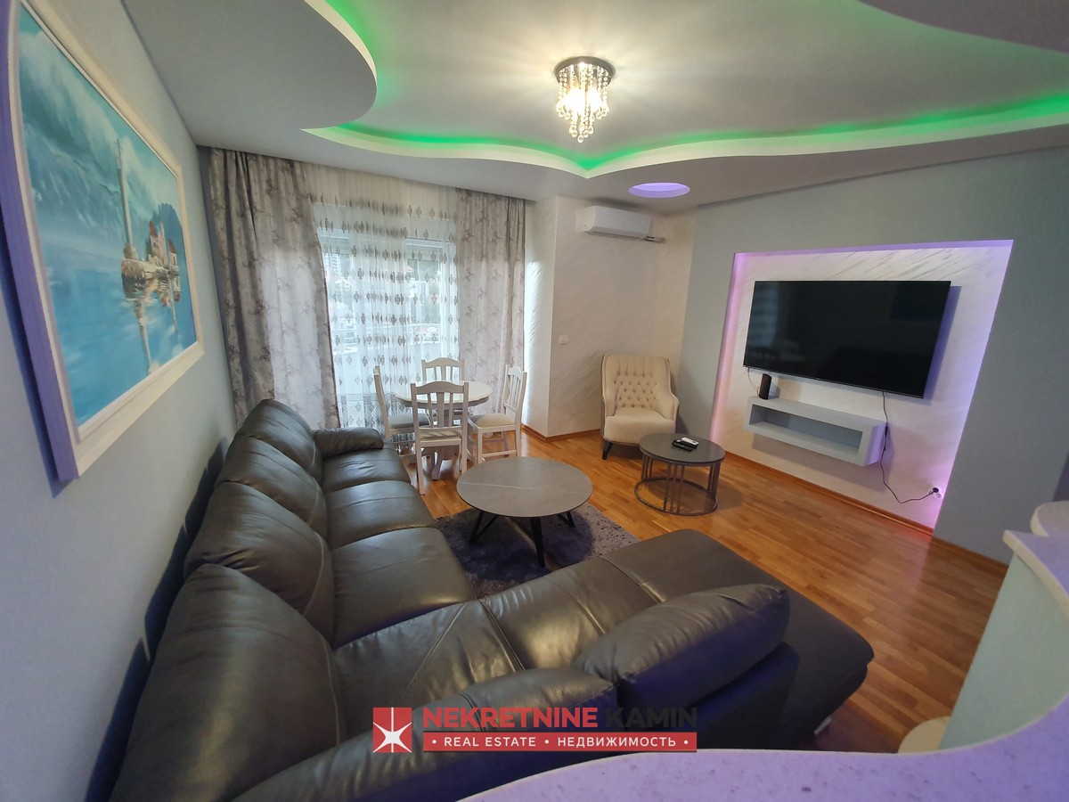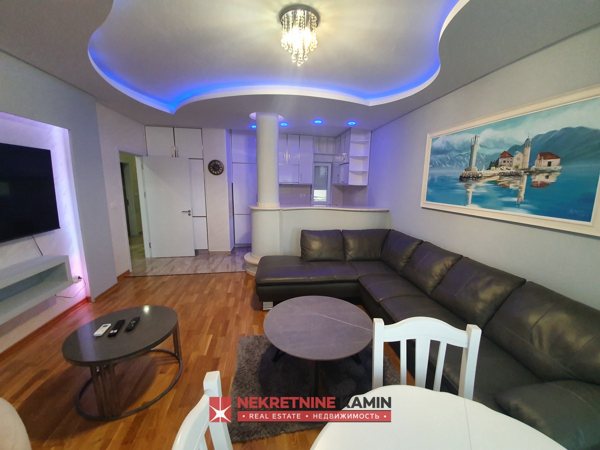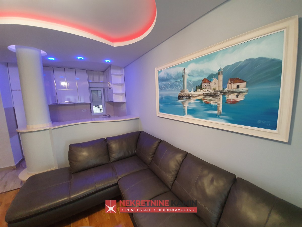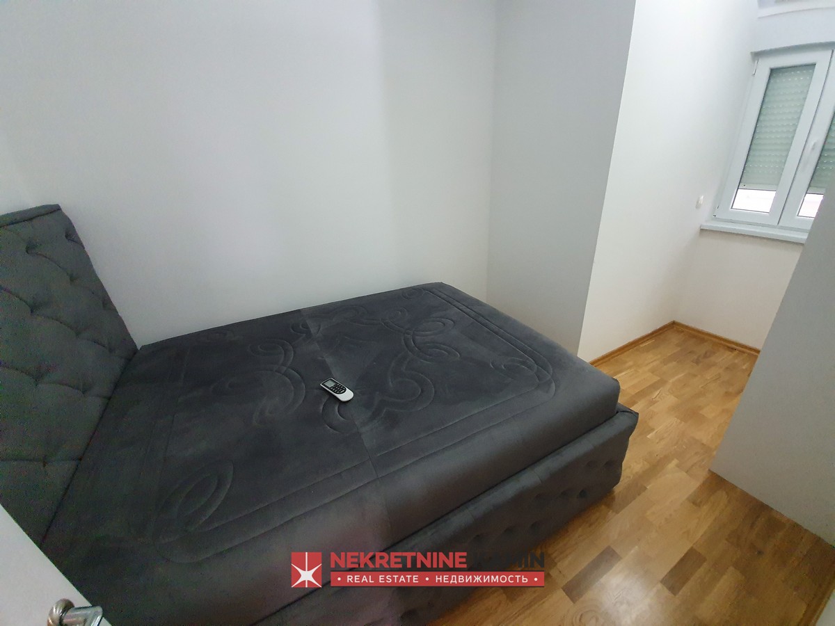 Nalazi se na II spratu stambene zgrade i kompletno je opremljen modernim namještajem po mjeri i kvalitetnom bijelom tehnikom.