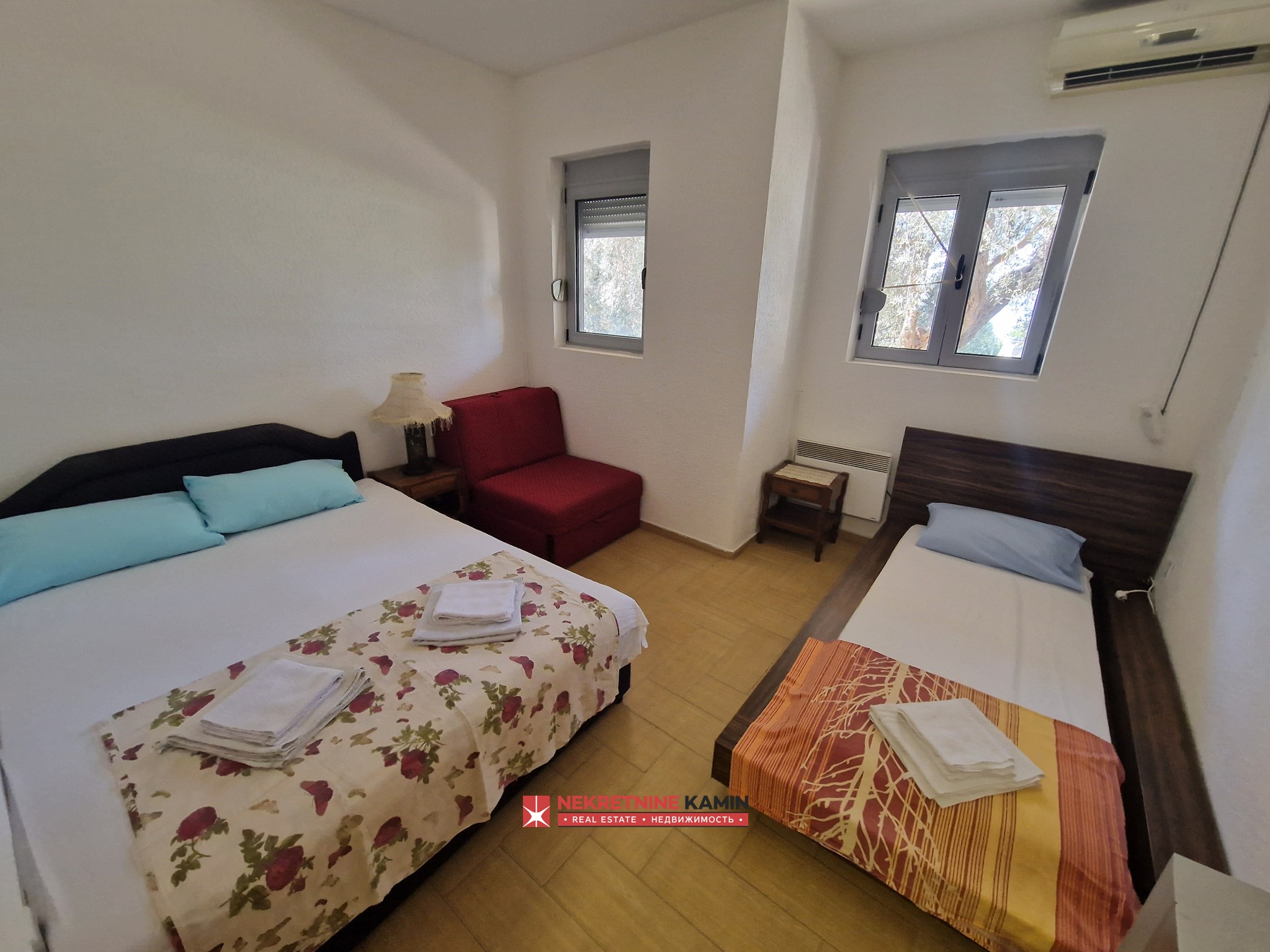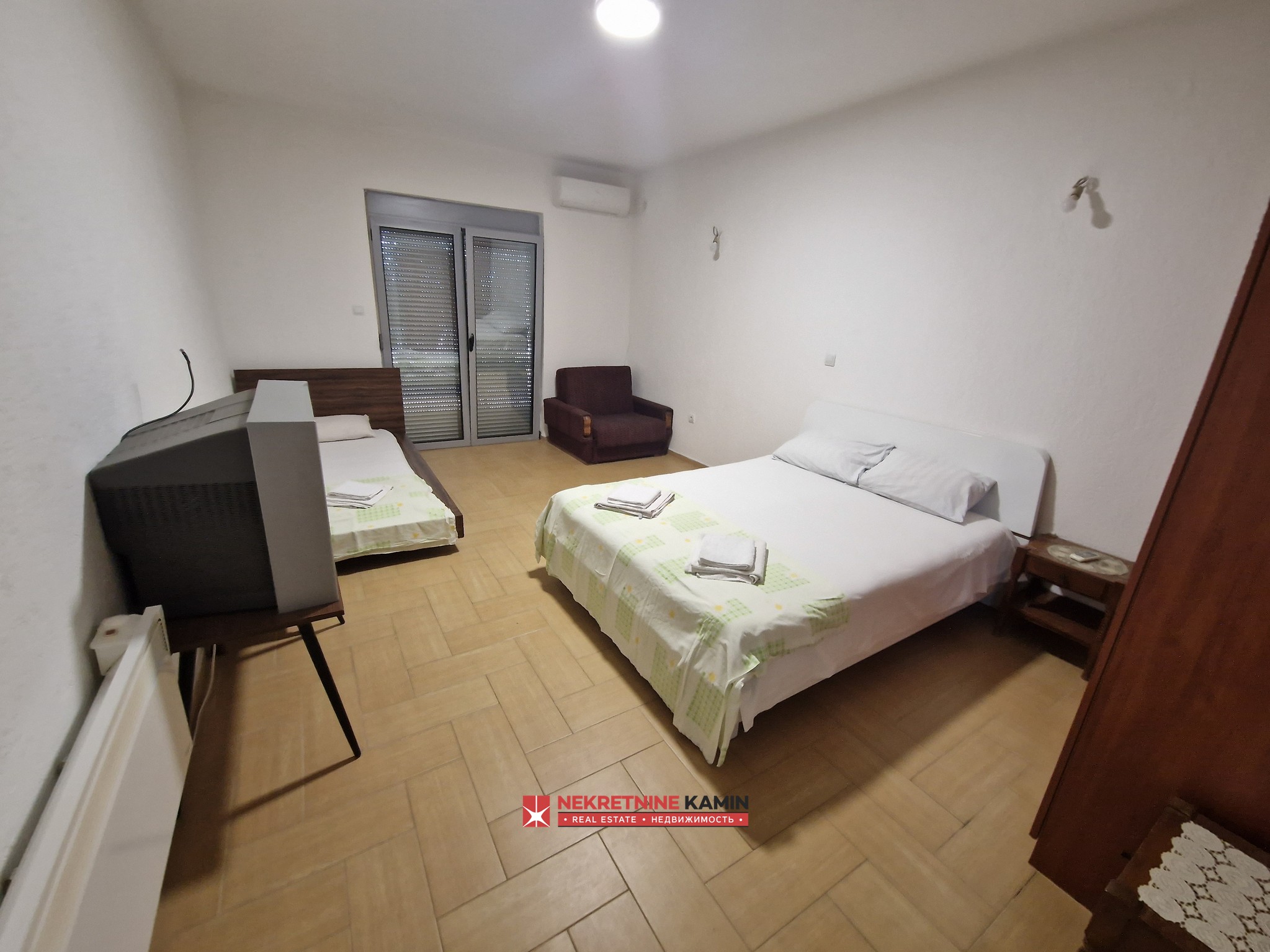 Na prodaju dvojna kuća površine 192m2(u stvarnosti oko 250m2) na placu 278m2. Nalazi se u blizini Druge osnovne škole u Budvi. Podijeljena...