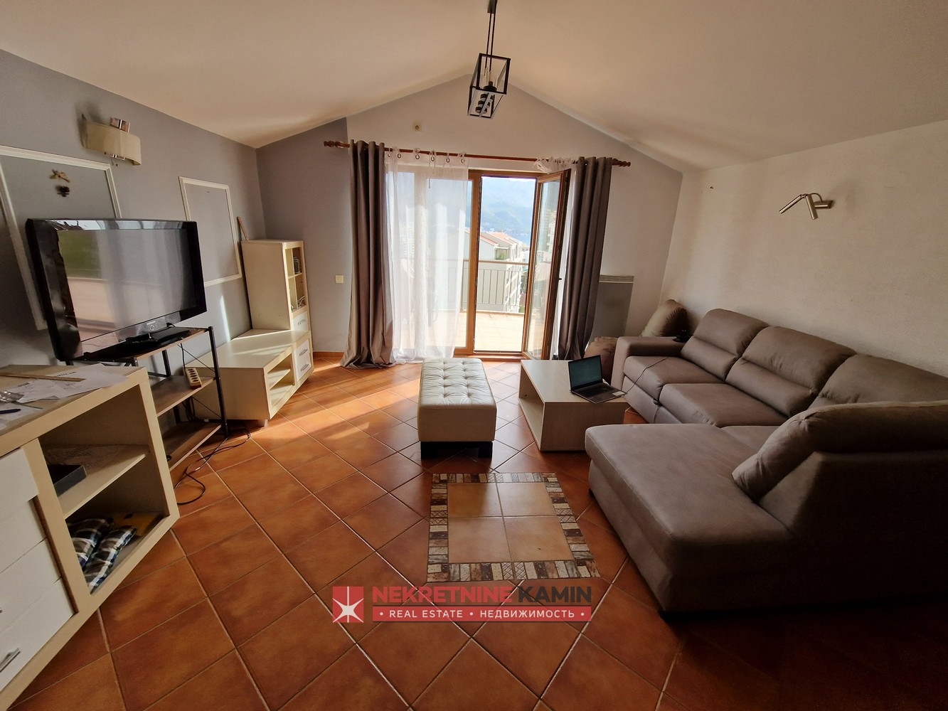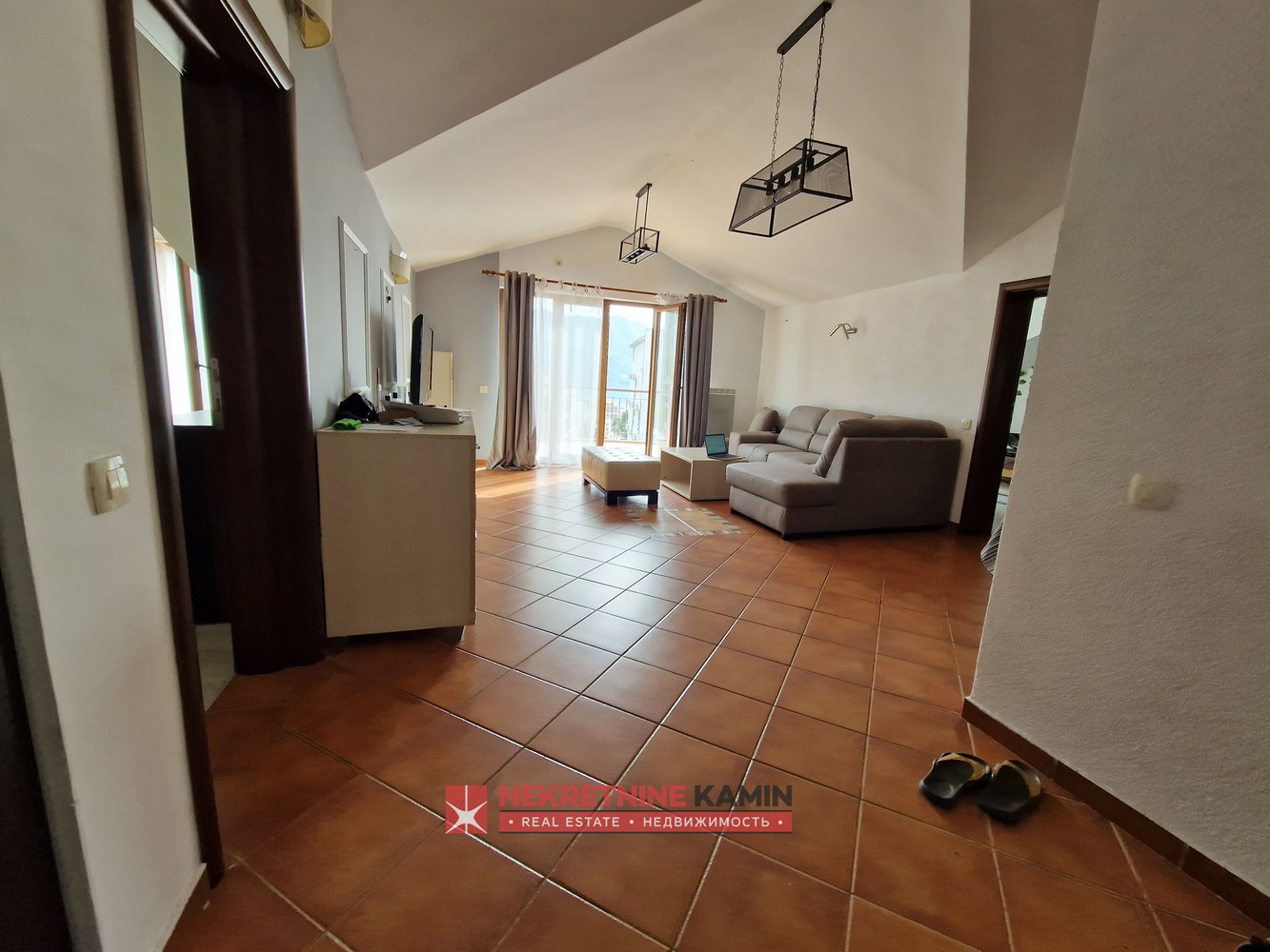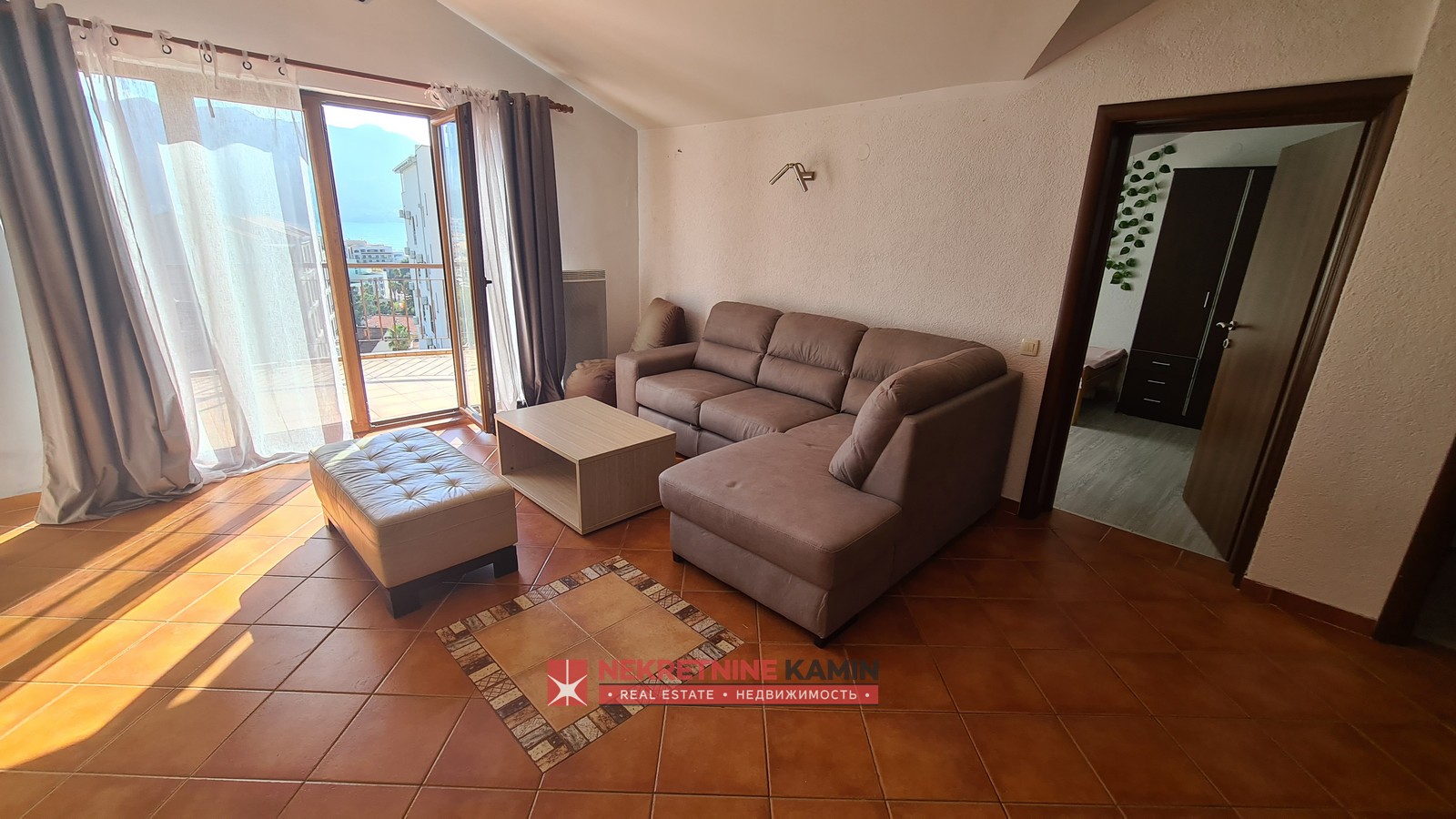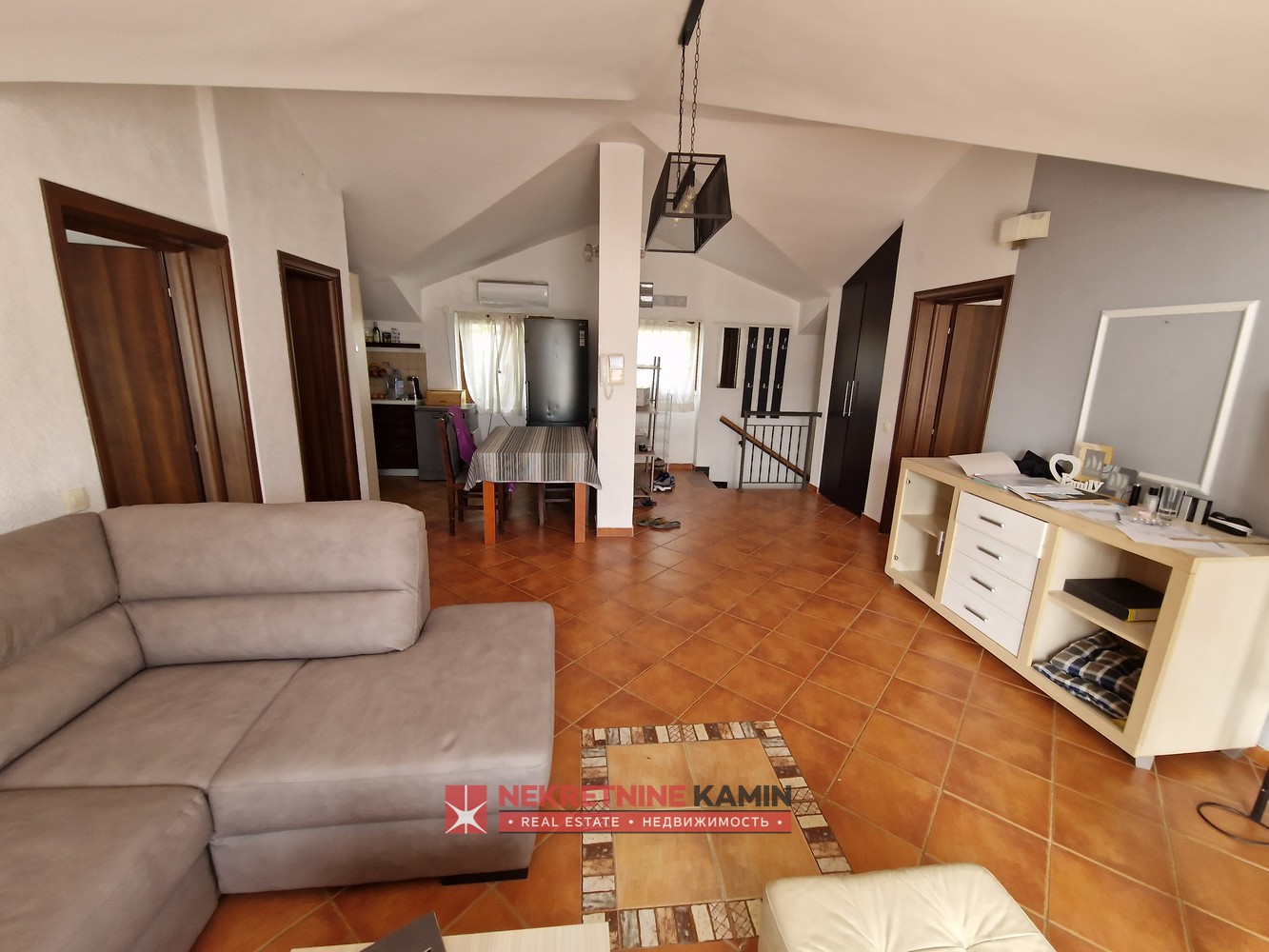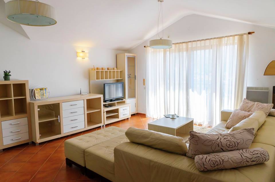 Sastoji se od dve spavaće sobe, dnevnog boravka, velike terase sa pogledom na more, dva kupatila, hodnika, kuhinja, trpezarije.
