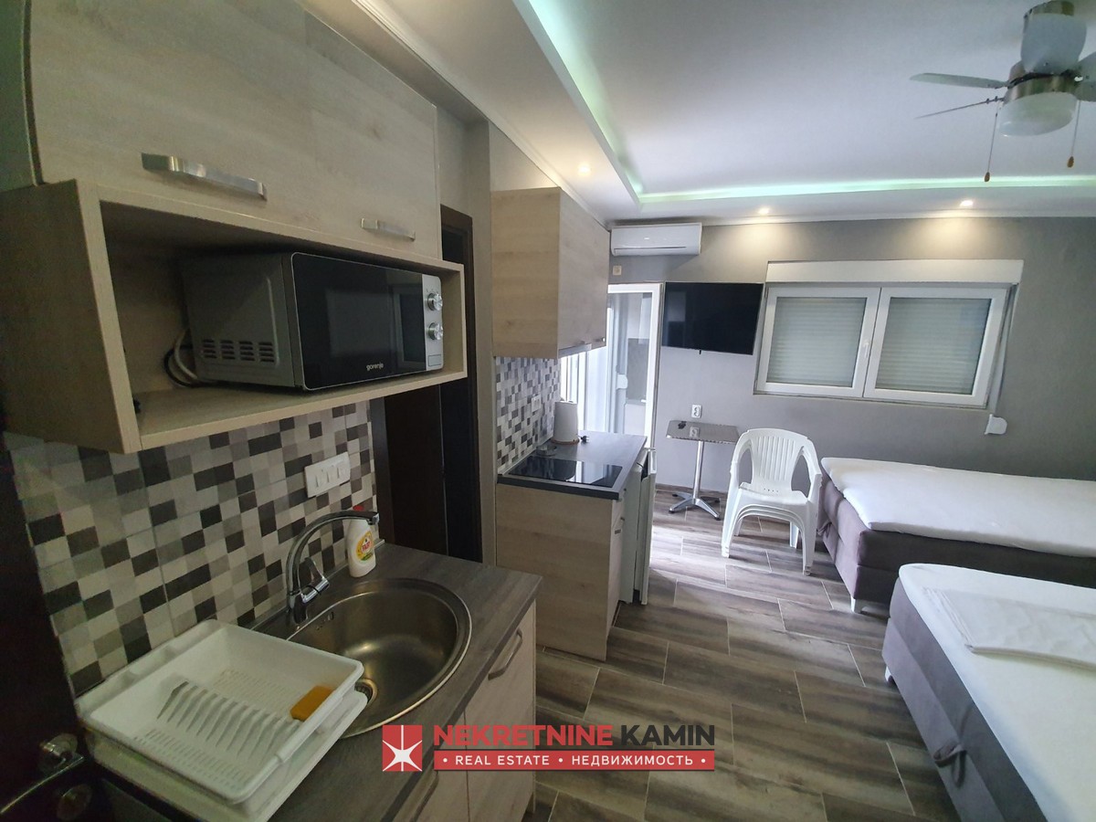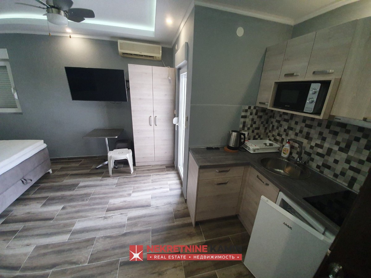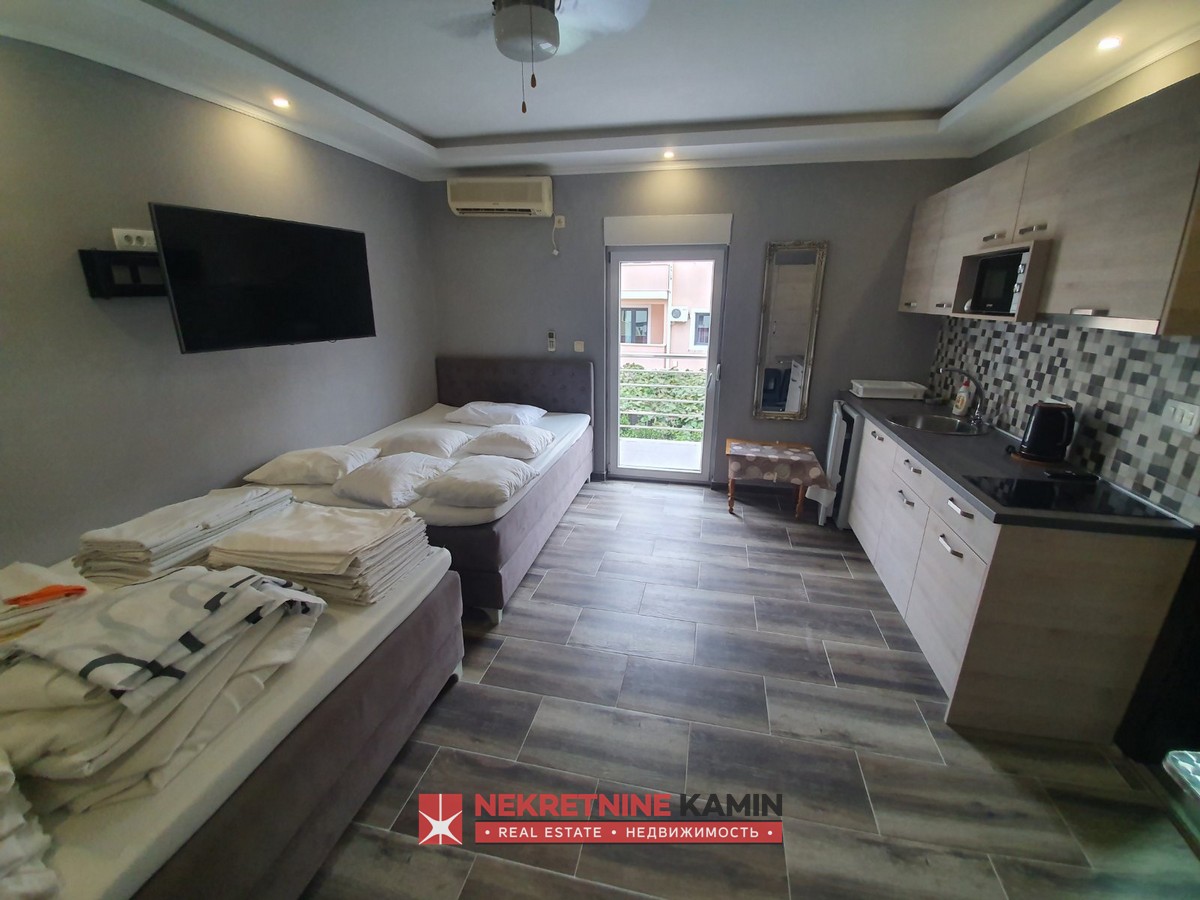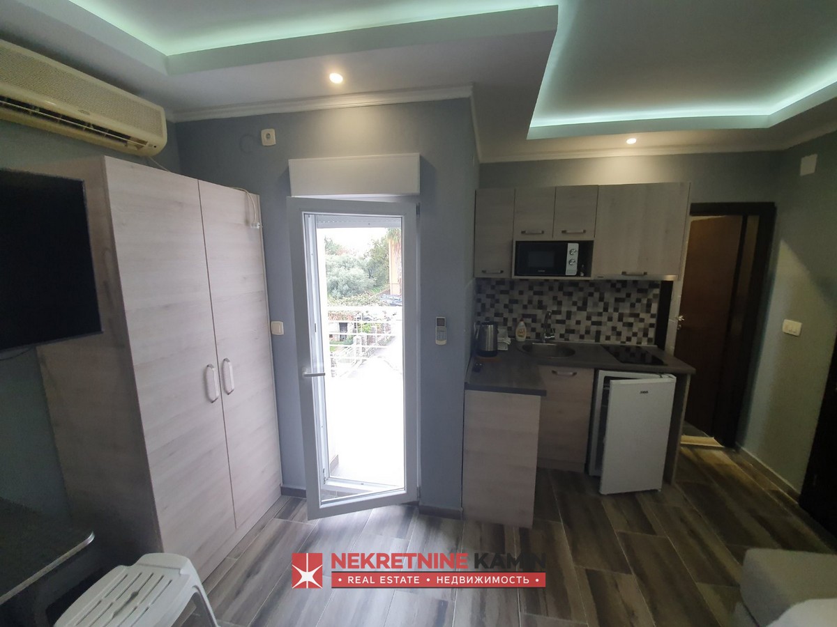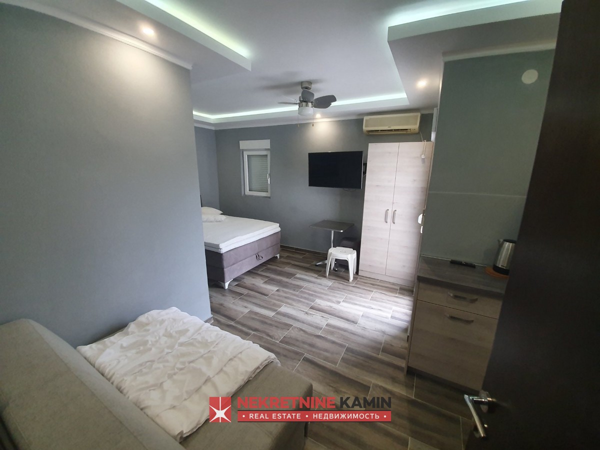 Na prvom spratu se nalazi dvosoban stan u fazi renoviranja a na drugom su tri opremljena apartmana sa terasama.