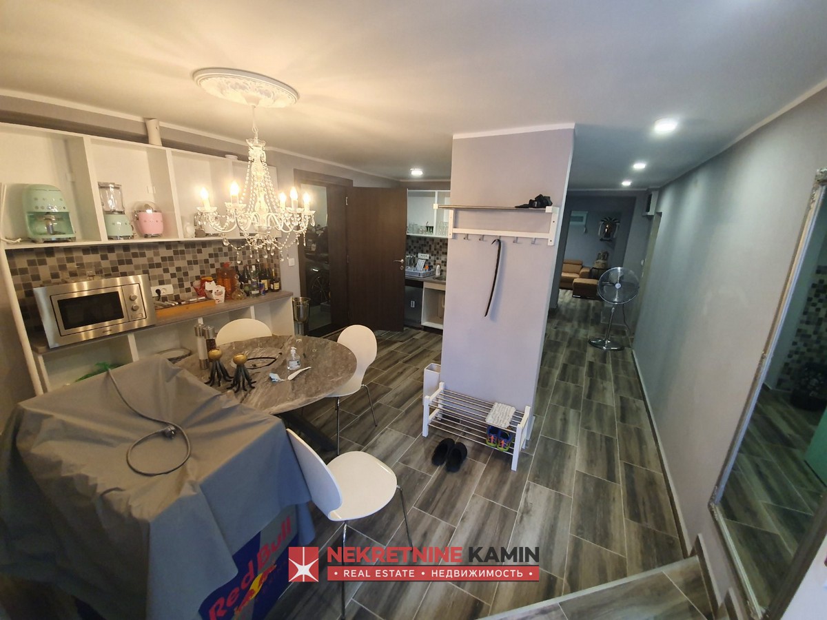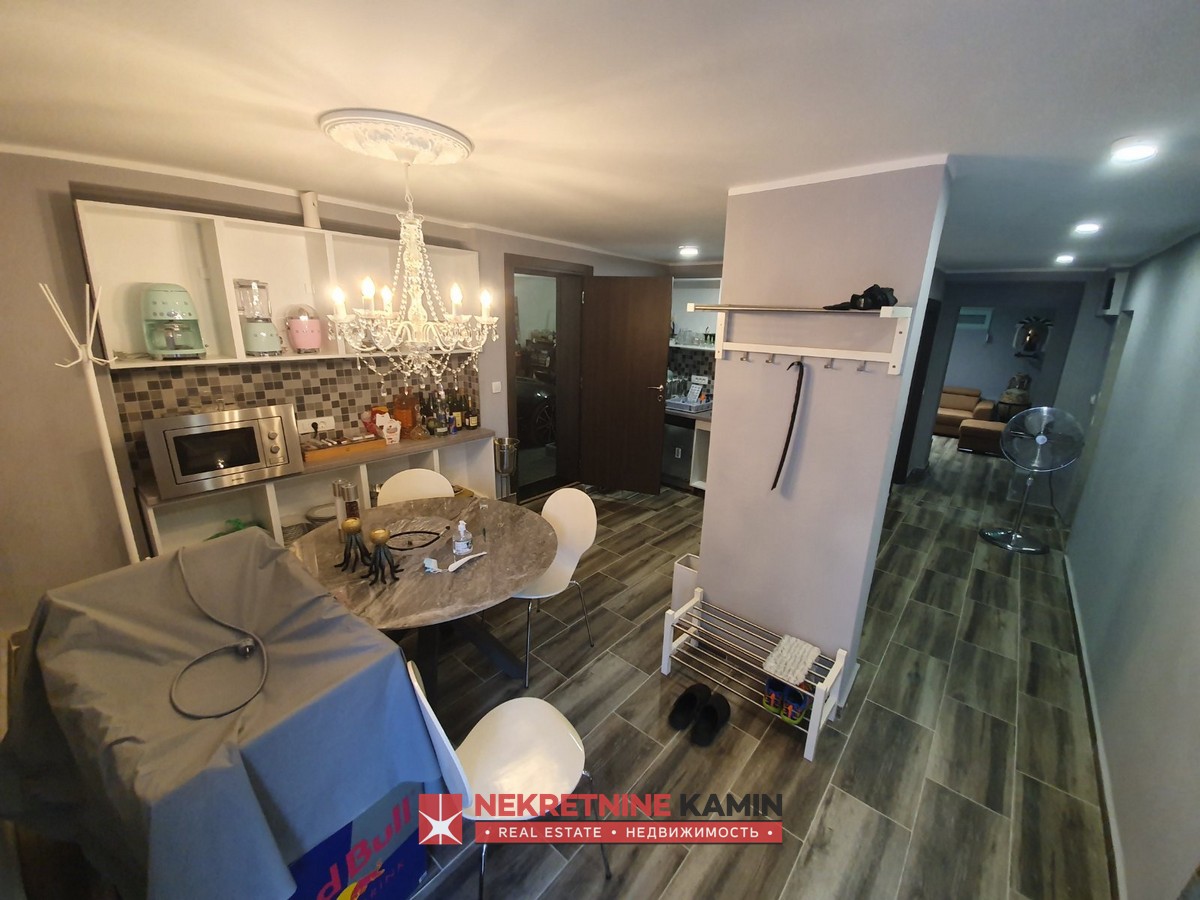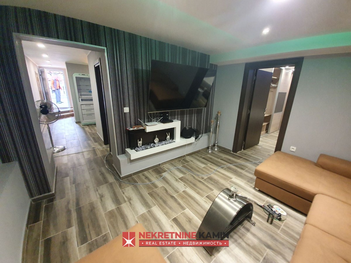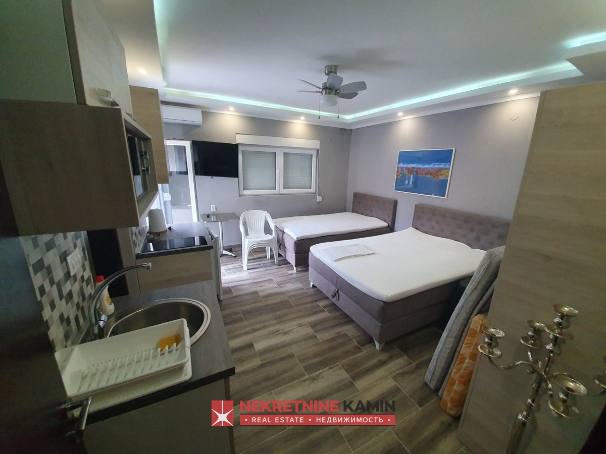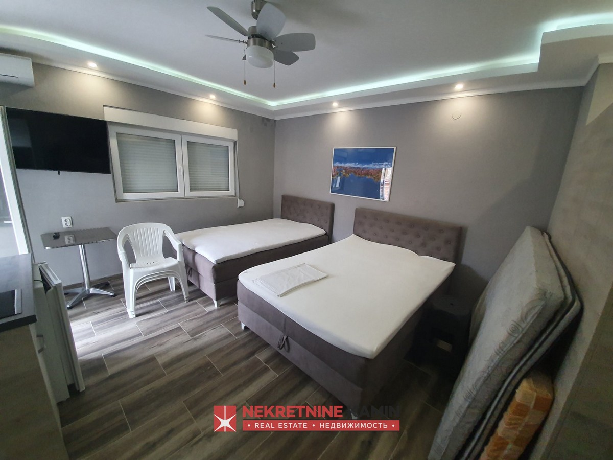 Na prvom spratu se nalazi dvosoban stan u fazi renoviranja a na drugom su tri opremljena apartmana sa terasama.