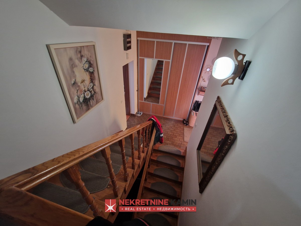 Ispred se nalazi velika terasa i uredno sredjeno dvorište sa garažom površine 29m2.
