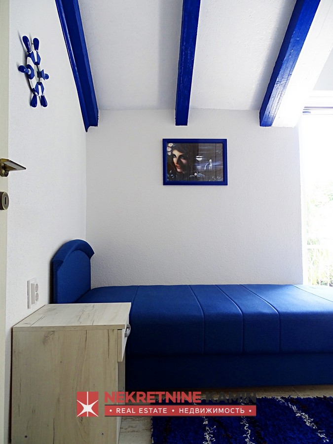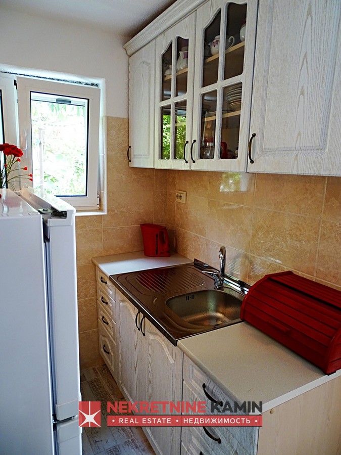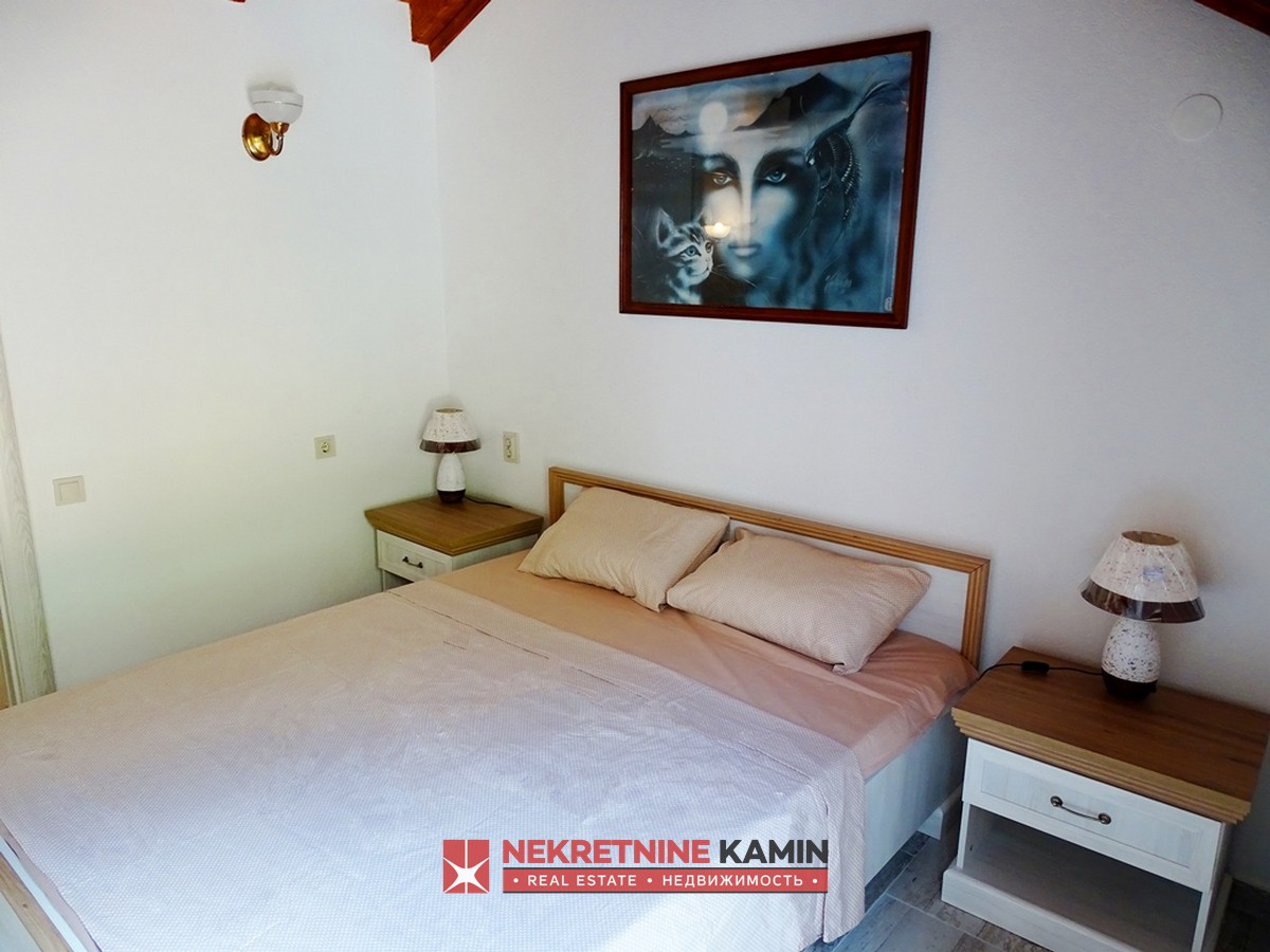 Orahovac je poznat i po najčistijoj vodi u zalivu. Ova udobna kuća (cca 71m2 + ljetna kuhinja veličine 7m2 na parceli od oko 170m2) smještena je u blizini svih važnijih turističkih atrakcija i infrastrukture.