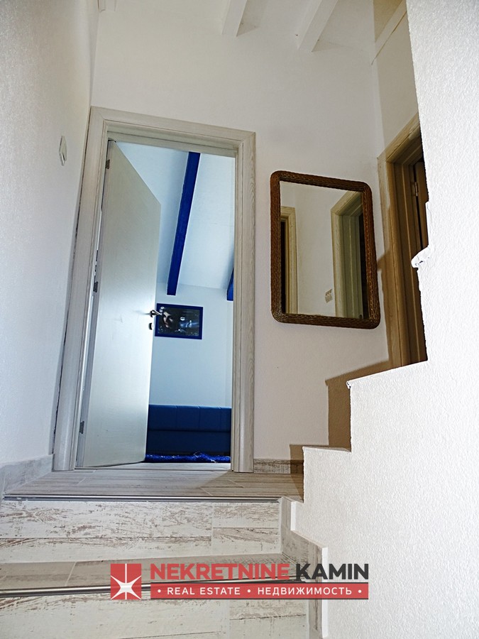 Samo 15 minuta od Kotora i Perasta. Kuća ima dva sprata. Na prvom spratu se nalazi dnevni boravak sa izlazom na terasu, kuhinju i kupatilo.