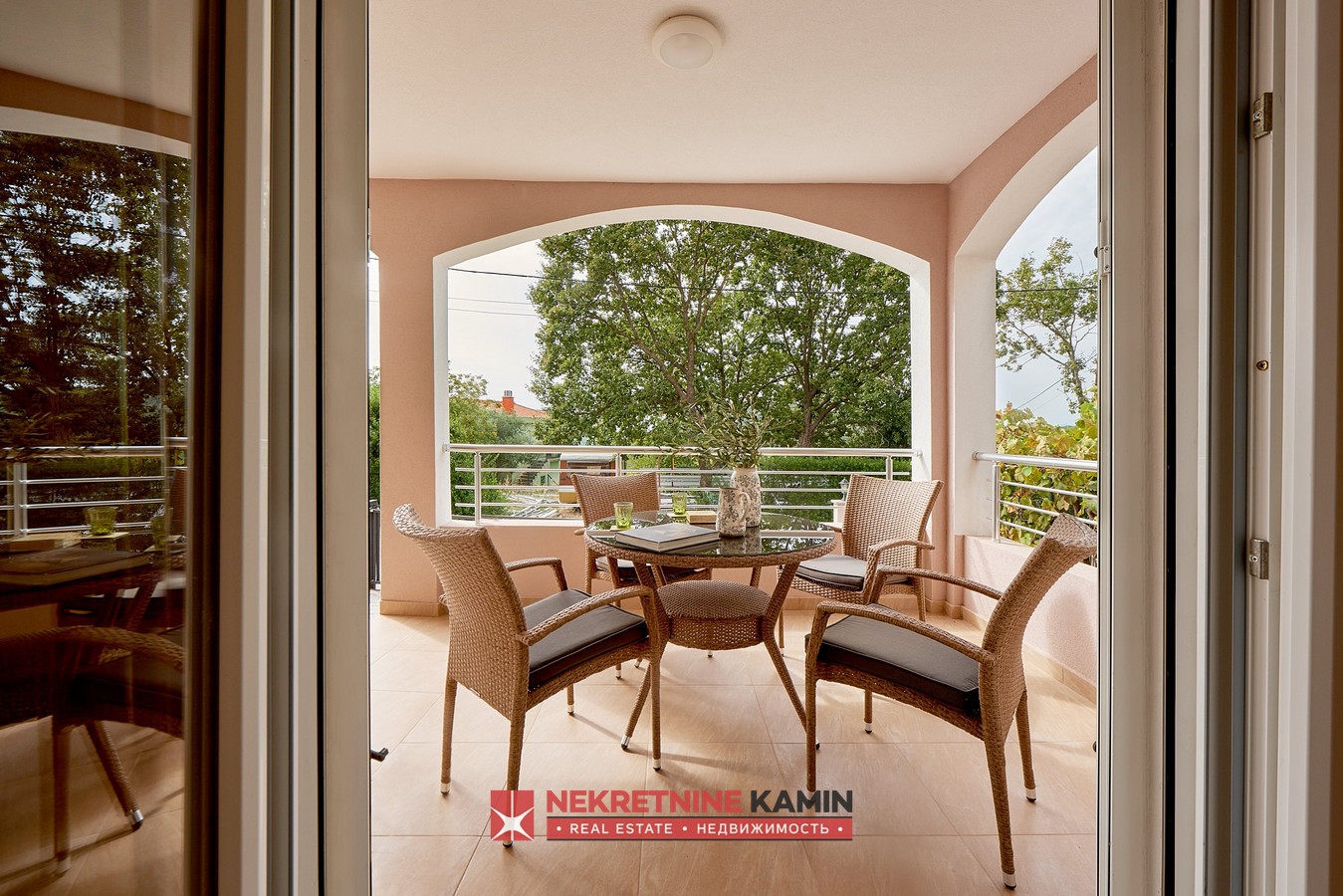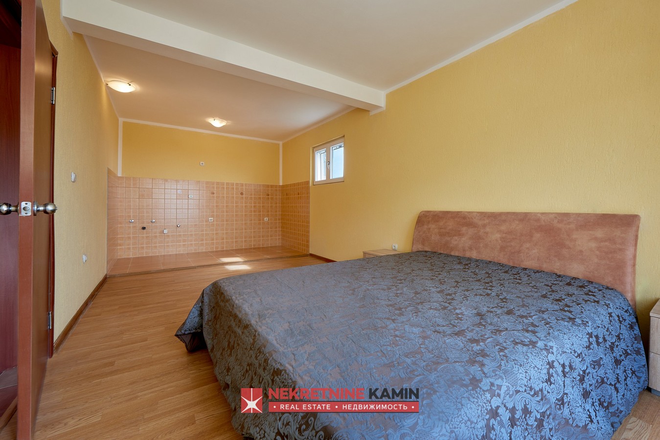 Sastoji se od četiri spavaće sobe, dnevnog boravka sa kuhinjom, dva kupatila sa tuš kabinom i dvije terase.