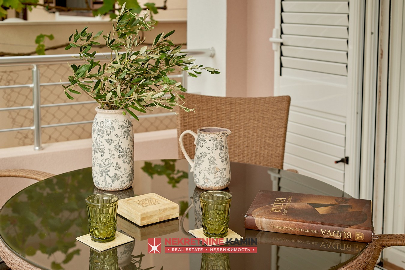 Od plaže je ovo mirno mjesto udaljeno oko 5-7 minuta, a do centra grada Budve kolima je potrebno 15minuta.