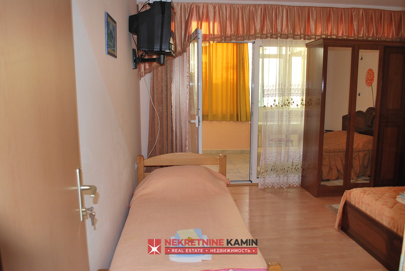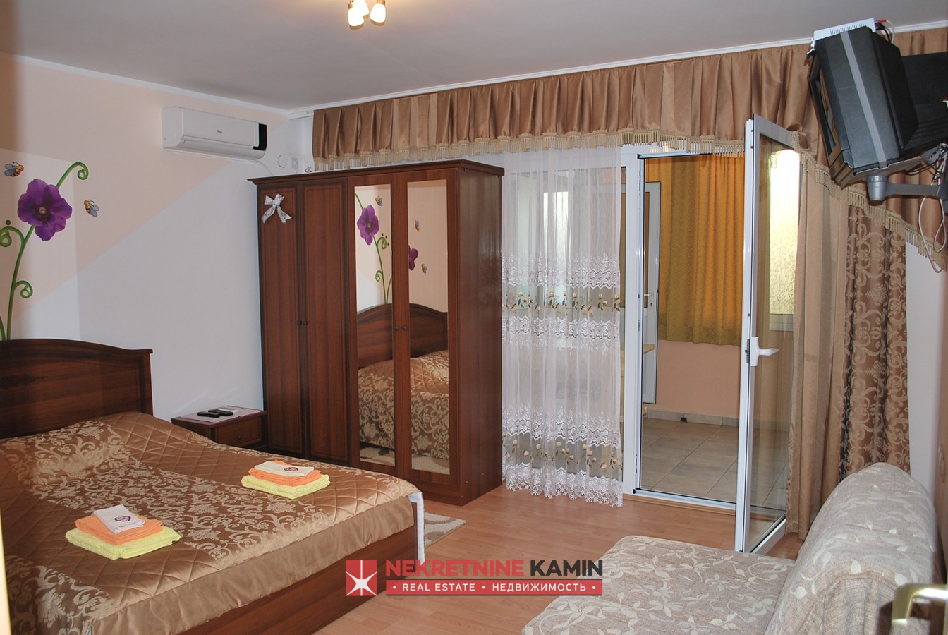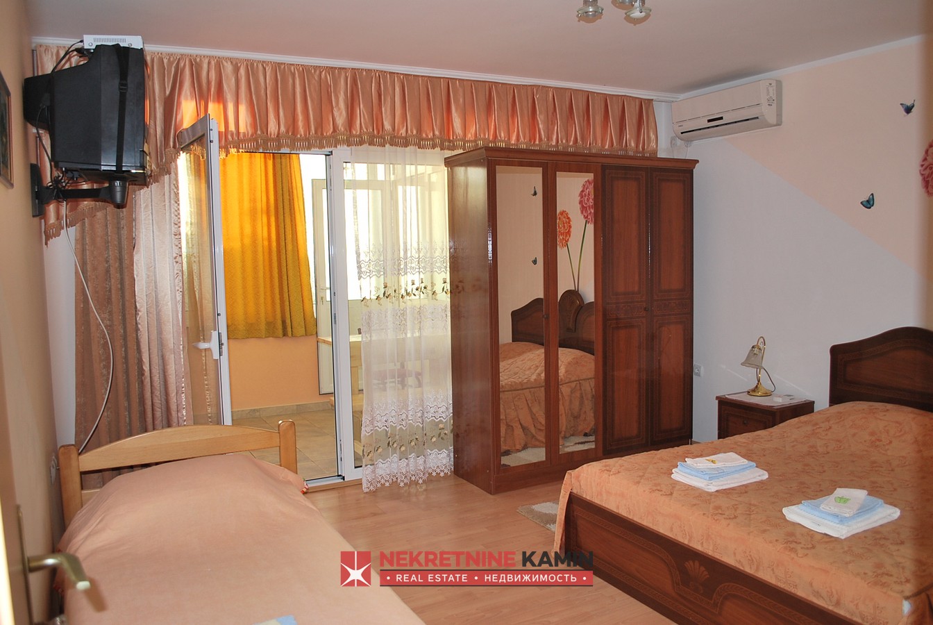 Kuća površine 460m2 (217m2 po papirima) se nalazi u naselu Dobre vode u blizini Bara na 350 m od plaže i 100m od centra - magistrale. Izgrađena je 2008, a generalni remont sa dogradnjom završnog 4 sprata je završen početkom 2017. Objekat je rađen namenski za smeštaj turista i ima 8 apartmana raznih veličina ili za oko 30 osoba. Na trećem spratu se nalazi bazen 4 x 5 x 1,6 sa ogromnom terasom koja je namenjena za ležaljke, stolove, gril i td.