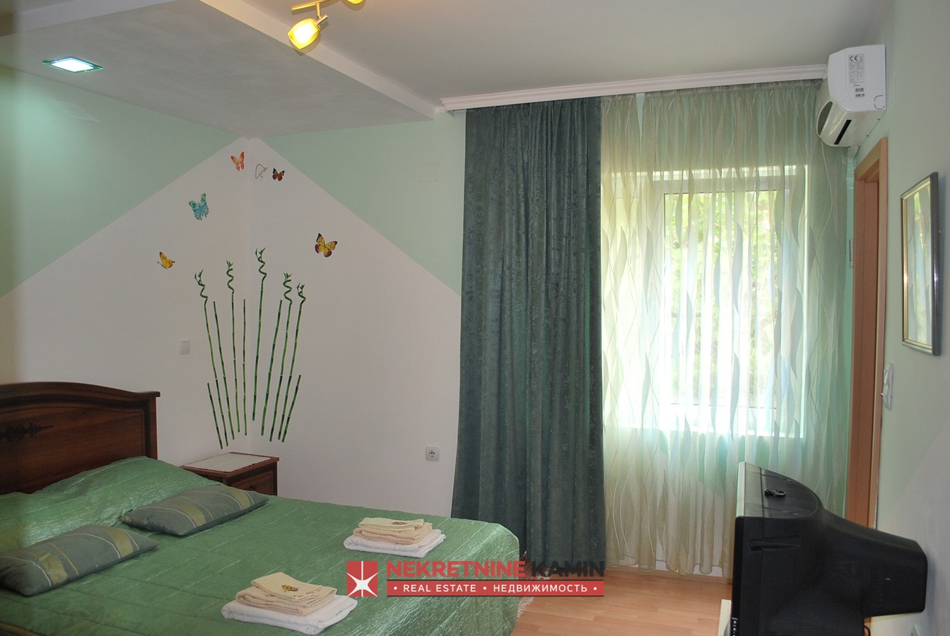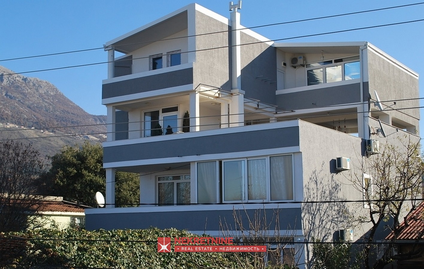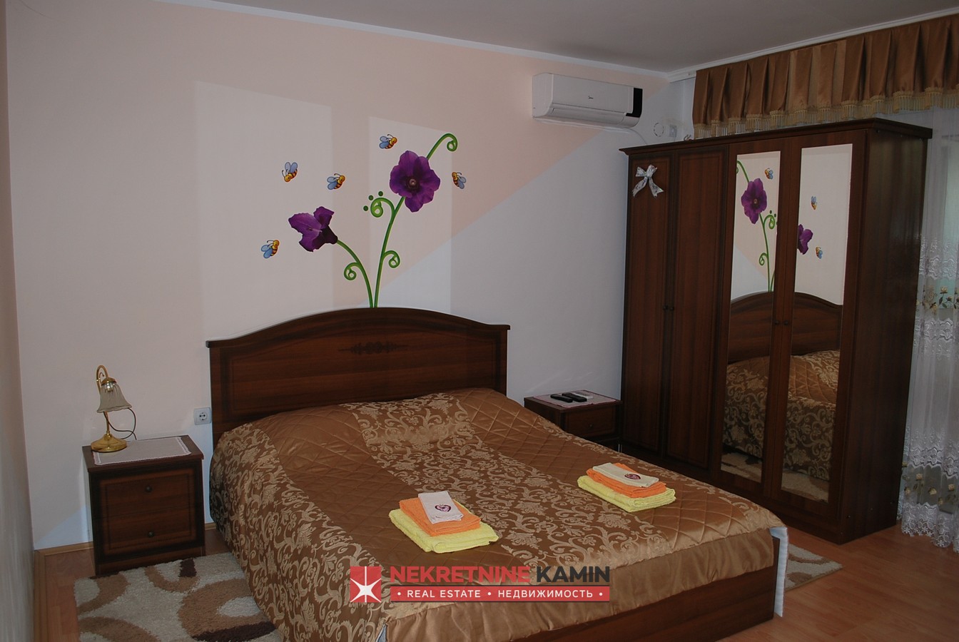 Kuća površine 460m2 (217m2 po papirima) se nalazi u naselu Dobre vode u blizini Bara na 350 m od plaže i 100m od centra - magistrale. Izgrađena je 2008, a generalni remont sa dogradnjom završnog 4 sprata je završen početkom 2017. Objekat je rađen namenski za smeštaj turista i ima 8 apartmana raznih veličina ili za oko 30 osoba. Na trećem spratu se nalazi bazen 4 x 5 x 1,6 sa ogromnom terasom koja je namenjena za ležaljke, stolove, gril i td.